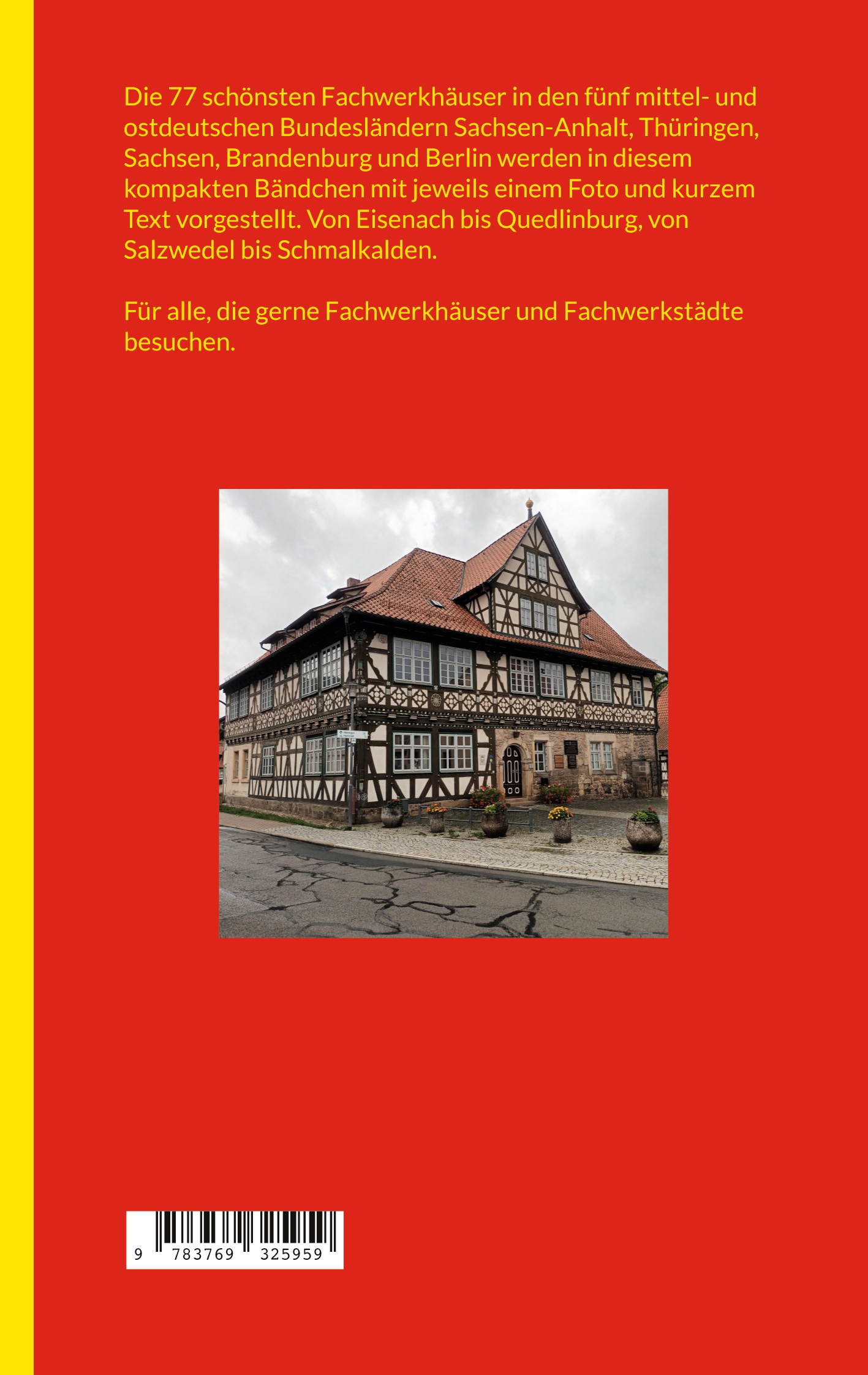 Die 55 schönsten Fachwerkhäuser, ausgewählt aus 90 vorgestellten Gebäuden, in den vier ostdeutschen Bundesländern Berlin, Brandenburg, Sachsen-Anhalt, Brandenburg und Mecklenburg-Vorpommern werden in diesem kompakten Bändchen mit jeweils einem Foto und kurzem Text vorgestellt. Von Berlin bis Quedlinburg, von Angermünde bis Wismar. Für alle, die gerne Fachwerkhäuser sehen und Fachwerkstädte besuchen.