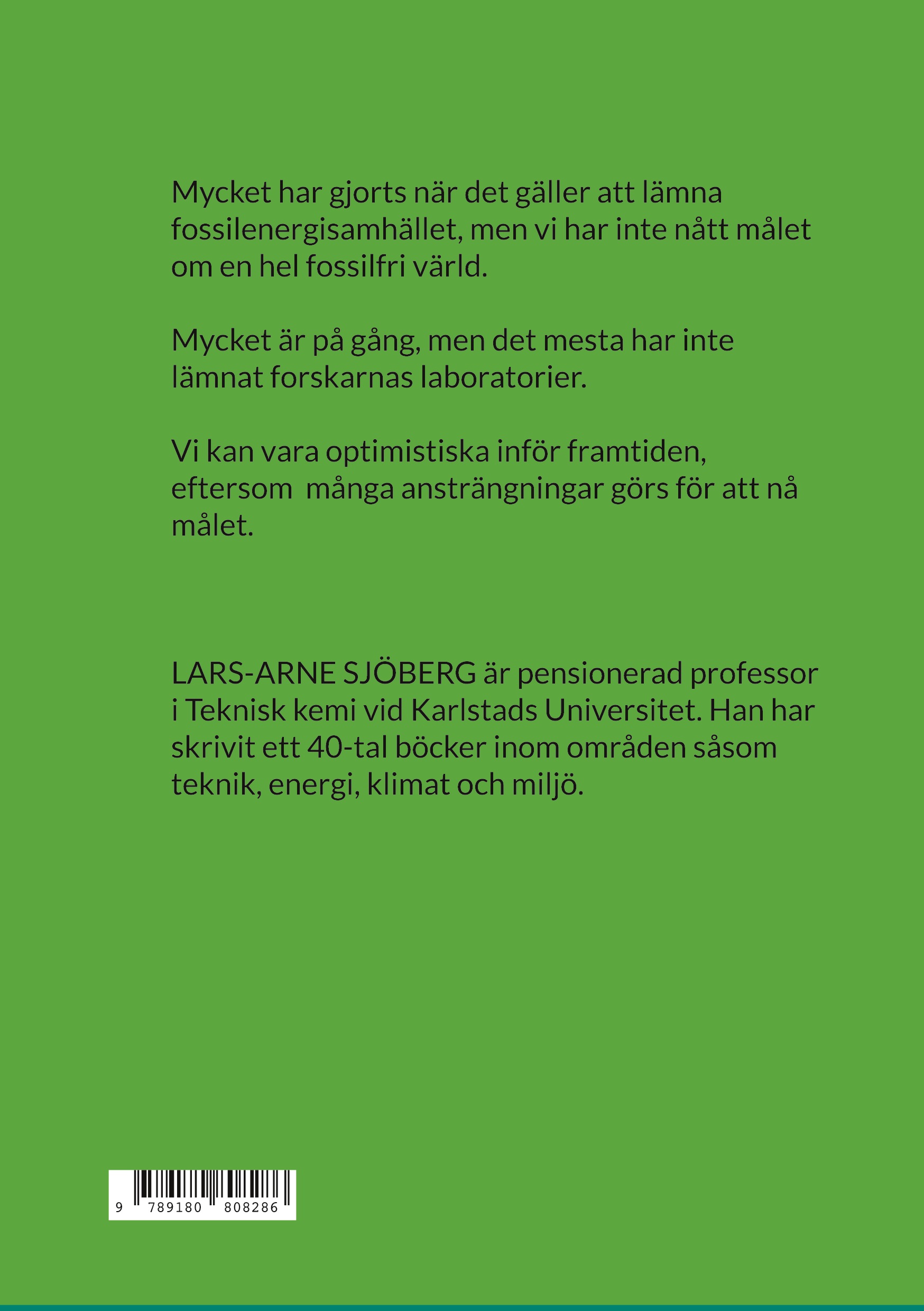 LARS-ARNE SJÖBERG är en pensionerad professor i Teknisk kemi från Karlstads Universitet. Han har skrivit ett 40-tal böcker inom områden såsom klimat, energi, miljö och teknik.