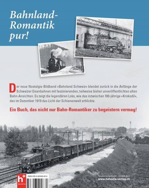 Der neue Nostalgie-Bildbahn "Bahnland Schweiz" blendet zurück in die Anfänge der Schweizer Eisenbahnen mit faszinierenden, teilweise bisher unveröffentlichten alten Bahn-Ansichten. Es zeigt die legendären Loks, wie das inzwischen 100-jährige "Krokodil", das im Dezember 1919 das Licht der Schienenwelt erblickte.