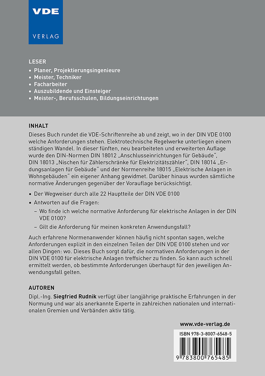 eine Navigation durch die 22 Hauptteile der DIN VDE 0100 "Errichten von Niederspannungsanlagen" unter Berücksichtigung von DIN 18012, DIN 18013, DIN 18014 sowie DIN 18015-1 bis -5