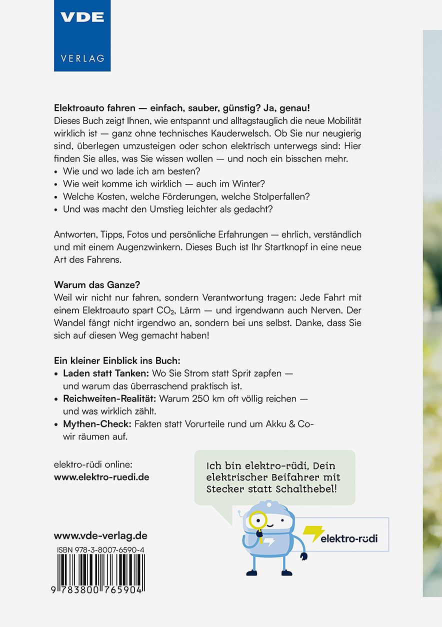 Elektroauto fahren - einfach, sauber, günstig? Ja, genau!Dieses Buch zeigt Ihnen, wie entspannt und alltagstauglich die neue Mobilität wirklich ist - ganz ohne technisches Kauderwelsch. Ob Sie nur neugierig sind, überlegen umzusteigen oder schon elektrisch unterwegs sind: Hier finden Sie alles, was Sie wissen wollen - und noch ein bisschen mehr.- Wie und wo lade ich am besten?- Wie weit komme ich wirklich - auch im Winter?- Welche Kosten, welche Förderungen, welche Stolperfallen?- Und was macht den Umstieg leichter als gedacht?Antworten, Tipps, Fotos und persönliche Erfahrungen - ehrlich, verständlich und mit einem Augenzwinkern. Dieses Buch ist Ihr Startknopf in eine neue Art des Fahrens.Warum das Ganze? Weil wir nicht nur fahren, sondern Verantwortung tragen: Jede Fahrt mit einem Elektroauto spart CO2, Lärm - und irgendwann auch Nerven. Der Wandel fängt nicht irgendwo an, sondern bei uns selbst. Danke, dass Sie sich auf diesen Weg gemacht haben!Ein kleiner Einblick ins Buch:- Laden statt Tanken: Wo Sie Strom statt Sprit zapfen - und warum das überraschend praktisch ist.- Reichweiten-Realität: Warum 250 km oft völlig reichen - und was wirklich zählt.- Mythen-Check: Fakten statt Vorurteile rund um Akku & Co wir räumen auf.Mehr Tipps, Videos und Extras finden Sie auf:www.elektro-ruedi.de - Die Online-Anlaufstelle für Elektro- und Energietechnik und Elektromobilität im Alltag.