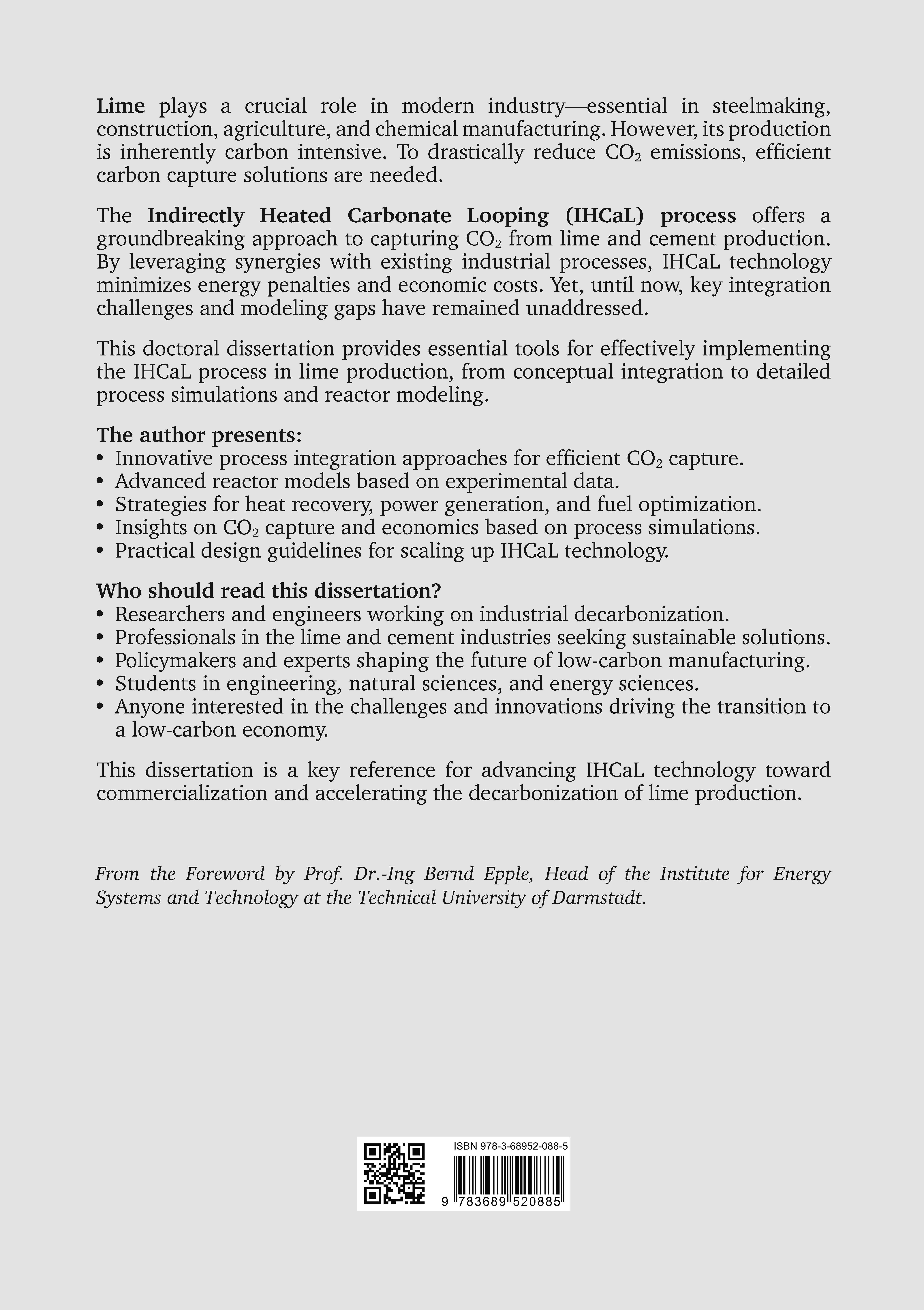Lime plays a crucial role in modern industry—essential in steelmaking, construction, agriculture, and chemical manufacturing. However, its production is inherently carbon-intensive. To drastically reduce CO2 emissions, efficient carbon capture solutions are needed. The Indirectly Heated Carbonate Looping (IHCaL) process offers a groundbreaking approach to capturing CO2 from lime and cement production. By leveraging synergies with existing industrial processes, IHCaL technology minimizes energy penalties and economic costs. Yet, until now, key integration challenges and modeling gaps have remained unaddressed. To fill this research gap, this doctoral dissertation presents innovative IHCaL process integration approaches for efficient CO2 capture; advanced reactor models based on experimental data; strategies for heat recovery, power generation, and fuel optimization; and insights on CO2 capture and economics based on process simulations. All of this is complemented by practical design guidelines for scaling up the IHCaL process. This dissertation is a key reference for advancing IHCaL technology toward commercialization and accelerating the decarbonization of lime production.