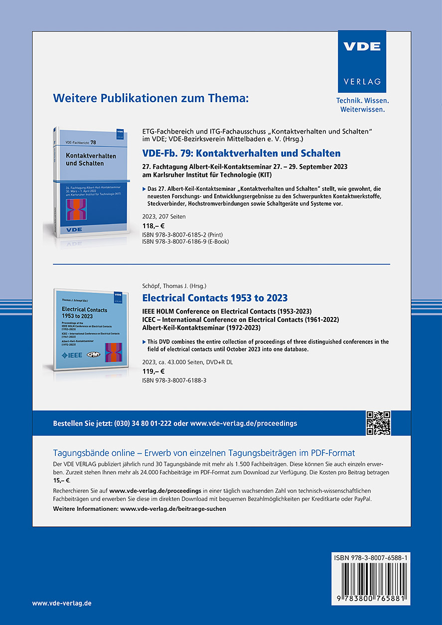 Das 28. Albert-Keil-Kontaktseminar "Kontaktverhalten und Schalten" stellt, wie gewohnt, die neuesten Forschungs- und Entwicklungsergebnisse zu den Schwerpunkten Kontaktwerkstoffe, Steckverbinder, Hochstromverbindungen sowie Schaltgeräte und Systeme vor.Beim Programmablauf der diesjährigen Fachtagung wird wieder in ,Schaltgeräte", "Steckverbinder" und "Schutztechnik" unterschieden, die als Vortragskomplexe jeweils zeitlich zusammengefasst behandelt werden. Damit soll den Teilnehmern, die sich nur für einen Komplex interessieren und denen nur ein eingeschränkter Zeitrahmen zur Verfügung steht, Gelegenheit gegeben werden, sich auf ihr Interessengebiet zu konzentrieren.In einer Zeit, in der die Elektrifizierung und Digitalisierung unserer Gesellschaft rasant voranschreiten, gewinnen zuverlässige und effiziente Schalt- und Kontakttechnologien zunehmend an Bedeutung. Die Tagung bringt Experten aus Wissenschaft, Industrie und Forschung zusammen, um innovative Lösungen zu diskutieren und neue Impulse für die Weiterentwicklung dieser Schlüsseltechnologien zu setzen. Besonders hervorheben möchte ich die Vielfalt der Themen, die in den kommenden Tagen behandelt werden. Von der experimentellen Betrachtung von Lichtbogenvorgängen über Schädigungsmechanismen und Langzeitverhalten von Kontaktwerkstoffen hin zu Komponenten in Form von Hybrid- und Halbleiterschaltern werden im Bereich Schalter und Schaltkontakte zahlreiche Disziplinen abgedeckt. Im Bereich der Steckverbinder werden bei weiter steigenden Übertragungs-leistungen thermische Simulation und Schraubenverbindungen im Fokus stehen, aber auch Crimpen und Clinchen behandelt.Des Weiteren werden durch den Fachausschuss Einführungsvorträge zum ruhenden Kontakt, Kontaktmaterialien und Lichtbogen gehalten. Diese Vorträge stellen die wesentlichen Grundlagen und den Stand der Konstruktion und Technologie auf diesen Gebieten in zusammenfassender Form vor.Das Albert-Keil-Kontaktseminar wird vom ETG-Fachbereich Q3 / ITG-Fachausschusses MN 8 "Kontakt-verhalten und Schalten" im VDE e. V. organisiert und vom VDE Bezirksverein Mittelbaden e.V. ausgerichtet.
