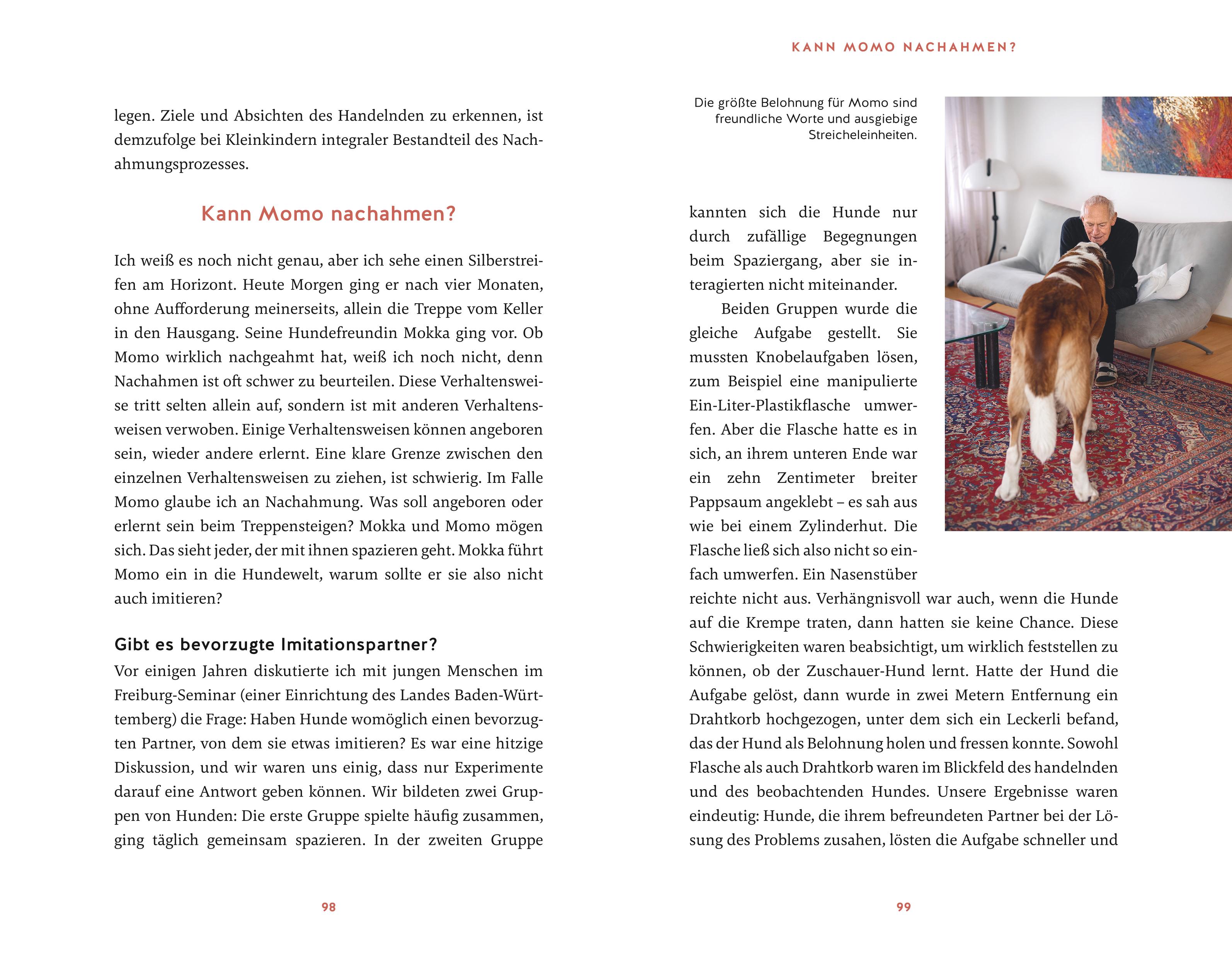 Hinweis zur OptimierungImpressumWichtiger Hinweis»Herr Birmelin, was sagen Sie zu ...«1. Eine unbekannte Welt2. Momo - ein Kaspar Hauser, ein Findling?3. Wer spielt, gewinnt4. Was weiß ein Tier von sich?5. Was du kannst, kann ich auch - Nachahmung6. Starke Gefühle7. Wir alle sind Persönlichkeiten8. Großartige Leistungen9. Wer bin ich? Das Rätsel im Spiegel10. Der Menschenversteher11. Kommunikation: Wer bist du?12. Bindung, der Kitt des Zusammenlebens13. Momo geht auf Reisen14. Ohne Lernen geht nichts15. Denken: Wie löse ich das Problem?16. Eine Eintrittskarte ins Gehirn - VersucheAdressen, die weiterhelfenLiteratur und QuellenDer Autor