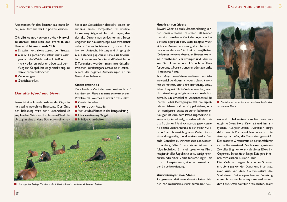 In diesem Ratgeber werden wichtige Fragen dazu praxisnah beantwortet, unter anderem: Wie erkenne ich, was mein Pferd noch leisten kann? Welche altersbedingten Probleme können auftreten?