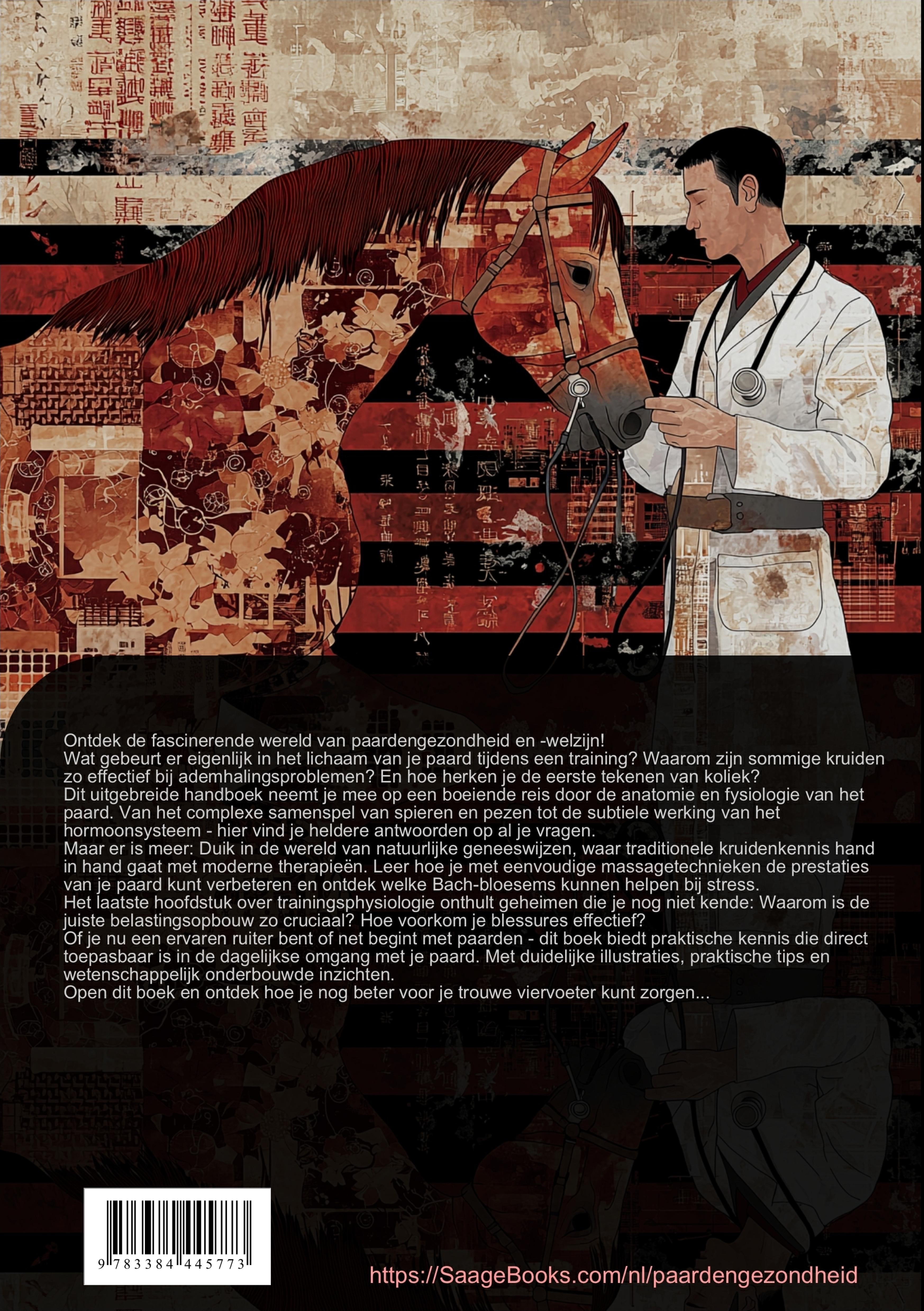 Dit uitgebreide paardenboek biedt een grondige kennisbasis over de gezondheid en het welzijn van paarden. Het werk is geschikt voor zowel beginnende als gevorderde paardenliefhebbers.Het eerste deel behandelt de anatomie paard in detail, waarbij de focus ligt op het bewegingsapparaat, orgaansystemen en stofwisselingsprocessen. Lezers krijgen inzicht in de werking van spieren, botten en pezen, evenals belangrijke orgaansystemen zoals ademhaling en spijsvertering.In het tweede deel komen natuurlijke geneeswijzen aan bod, waaronder kruidengeneeskunde, fysiotherapie en alternatieve behandelmethoden. Deze kennis is waardevol voor paardeneigenaren die een holistische benadering van paardengezondheid nastreven.Het derde deel richt zich op medische basiszorg, met praktische informatie over de stal-apotheek, eerste hulp en preventieve gezondheidscontroles. Dit helpt eigenaren om gezondheidsproblemen vroeg te herkennen en adequaat te handelen.Het laatste deel behandelt trainingsfysiologie, met aandacht voor spieropbouw, bewegingsleer en prestatieverbetering. Deze kennis is essentieel voor verantwoord paardrijden en training.Dit paardenboek combineert theoretische kennis met praktische tips en is geschikt voor paarden boeken volwassenen. Of u nu een recreatieve ruiter bent of professioneel met paarden werkt, dit boek biedt waardevolle inzichten voor het optimaliseren van de gezondheid en het welzijn van uw paard.Geschikt voor alle paardenliefhebbers die hun kennis willen verdiepen over paardengezondheid, anatomie en training.Dit boek is tot stand gekomen met behulp van innovatieve technologieën zoals Kunstmatige Intelligentie en speciaal ontwikkelde tools - bijvoorbeeld bij het bedenken van ideeën, onderzoek, schrijven, redigeren, kwaliteitsborging en het ontwerpen van decoratieve illustraties.Op deze manier willen wij u een bijzonder coherente, moderne en nog hoogwaardigere leeservaring bieden.