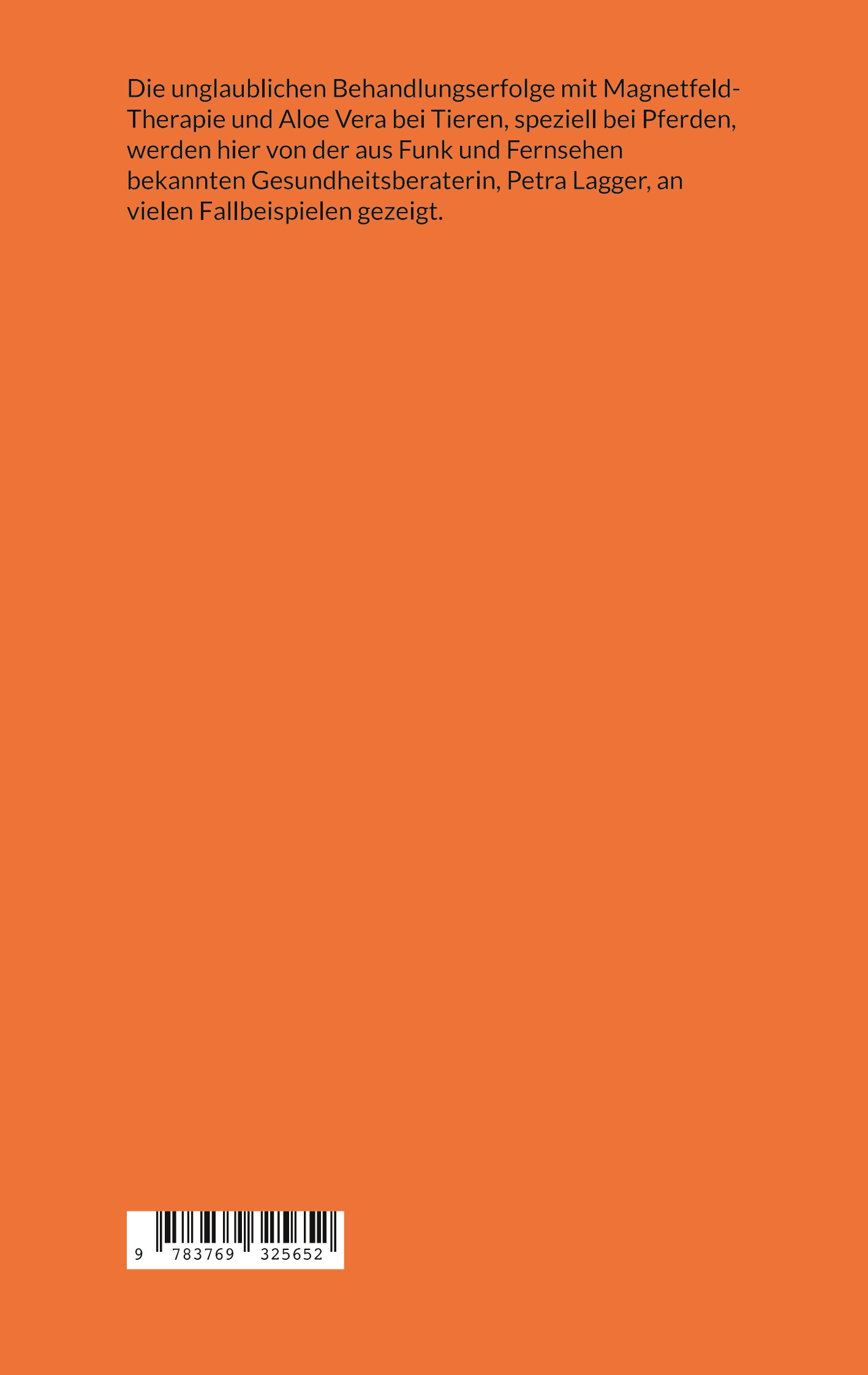 Die unglaublichen Behandlungserfolge mit Magnetfeld-Therapie und Aloe Vera bei Tieren, speziell bei Pferden, werden hier von der aus Funk und Fernsehen bekannten Gesundheitsberaterin, Petra Lagger, an vielen Fallbeispielen gezeigt.