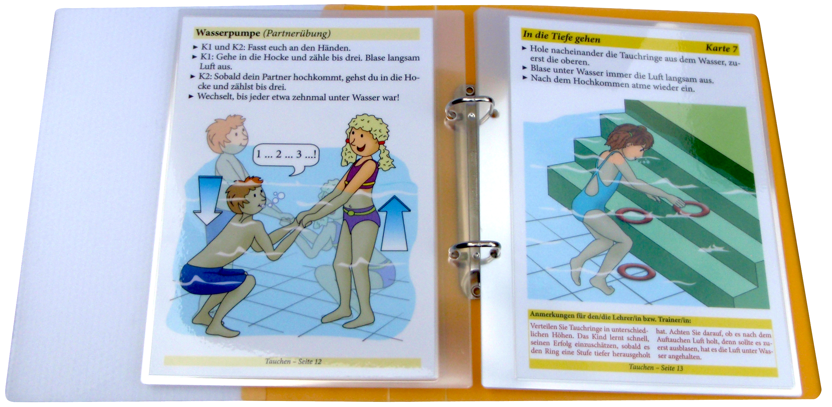 Die laminierten Karten eignen sich hervorragend, um mit ins Wasser genommen und die Übung dort auszuführen.
