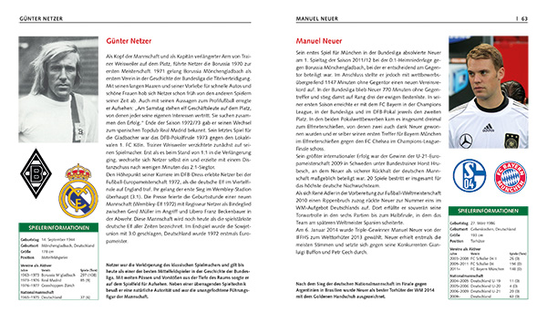 Fußball ist in Deutschland die absolute Nummer eins unter allen Sportarten. Und obwohl es sich hier um einen Mannschaftssport handelt, stehen die großen Stars immer wieder im Mittelpunkt des Interesses, faszinieren sie in einmaliger Weise ihr Publikum. Was machte Fritz Walter zum genialen Strategen der "Helden von Bern"? Was ließ Herbert Zimmermann jubeln: "Turek, du bist ein Teufelskerl! Turek, du bist ein Fußballgott"? Wie sportlich verkraftete "Uns Uwe" das umstrittene Wembley-Tor? Was ließ den "Kaiser" zum einmaligen Libero werden? Welches Tor war für Gerd Müller in seiner einzigartigen Karriere das wichtigste und was machte ihn zum "Bomber der Nation"? Was haben "Bananenflanken" mit einem "Kopfballungeheuer" zu tun? Welcher Spieler wechselte sich in einem DFB-Pokalfinale selbst ein und erzielte nur wenige Minuten später das Siegtor? Wann schoss Andy Brehme Deutschland zur dritten Fußballweltmeisterschaft? Welcher Spieler aus der DDR wurde als erster in die gesamtdeutsche Nationalmannschaft berufen? Für wie viele Millionen wechselte Mesut Özil von Real Madrid zu Arsenal London? Und was macht den "kleinen" Philipp Lahm zu einem so einen großen Spieler, zum Kapitän des Fußballweltmeisters in Brasilien? Fragen über Fragen, die in den vorliegenden Biographien ihre Antwort finden. Prägnant formuliert, schildern sie den Werdegang der einzelnen Spieler und das, was sie als Sportler und Mensch auszeichnet. Die Zusammenschau dieser Lebensbilder ist dabei gleichzeitig auch eine pointierte Geschichte des deutschen Fußballs von den Fünfzigerjahren bis heute, von den Legenden und Helden, die uns fasziniert haben, bis zu den großen Spielern, die uns heute und morgen begeistern werden.