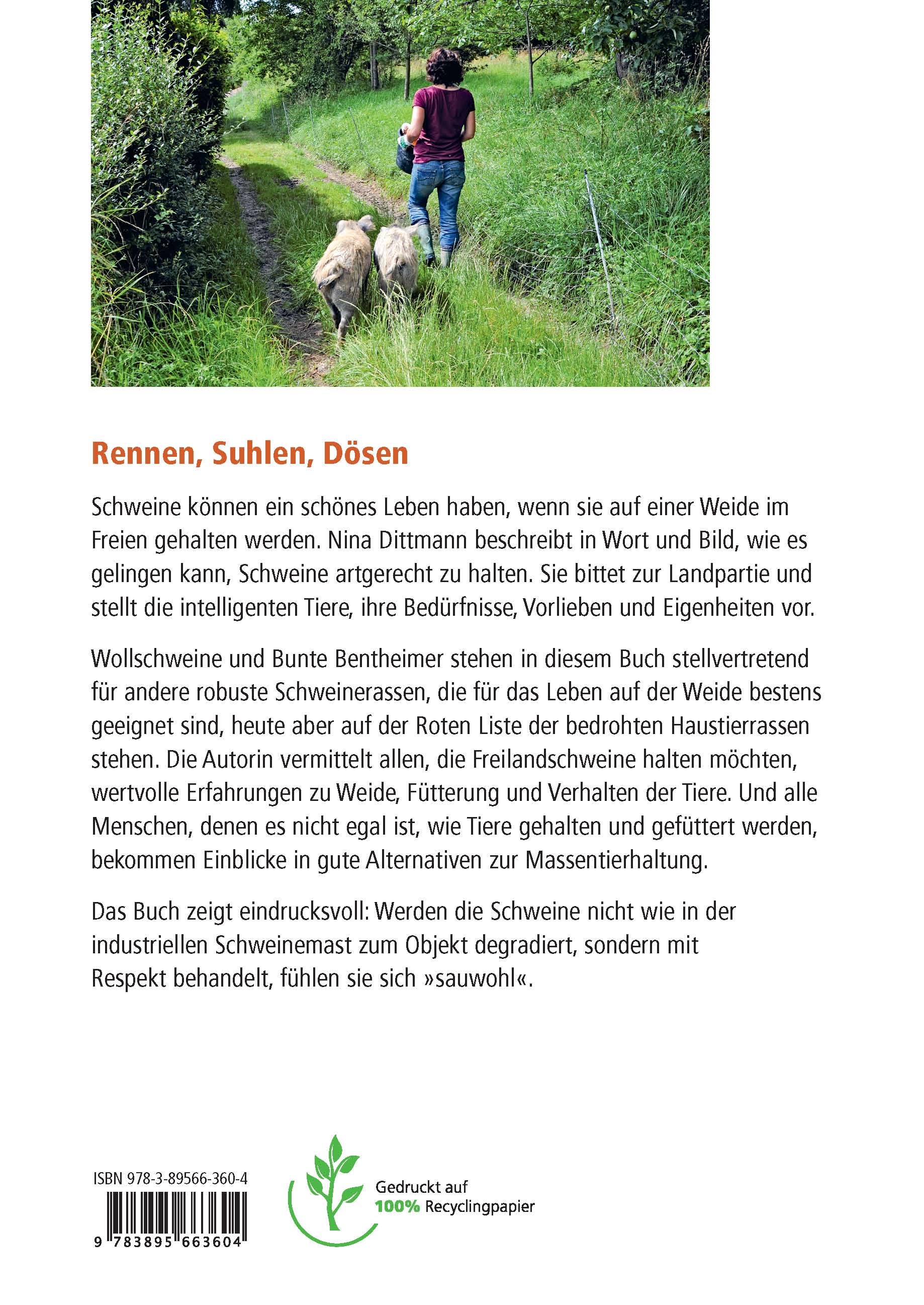 Nina Dittmann ist Diplom-Verwaltungswirtin und lebt mit ihrer Familie im Rhein-Main-Gebiet. Sie baut zur Selbstversorgung Obst und Gemüse an, hält ganzjährig robuste Schweine im Freiland auf gepachteten Weiden, Federvieh im Freiland und Wachteln im Garten. Die Autorin ist Mitglied in der Gesellschaft zur Erhaltung alter und gefährdeter Haustierrassen e. V. (GEH).