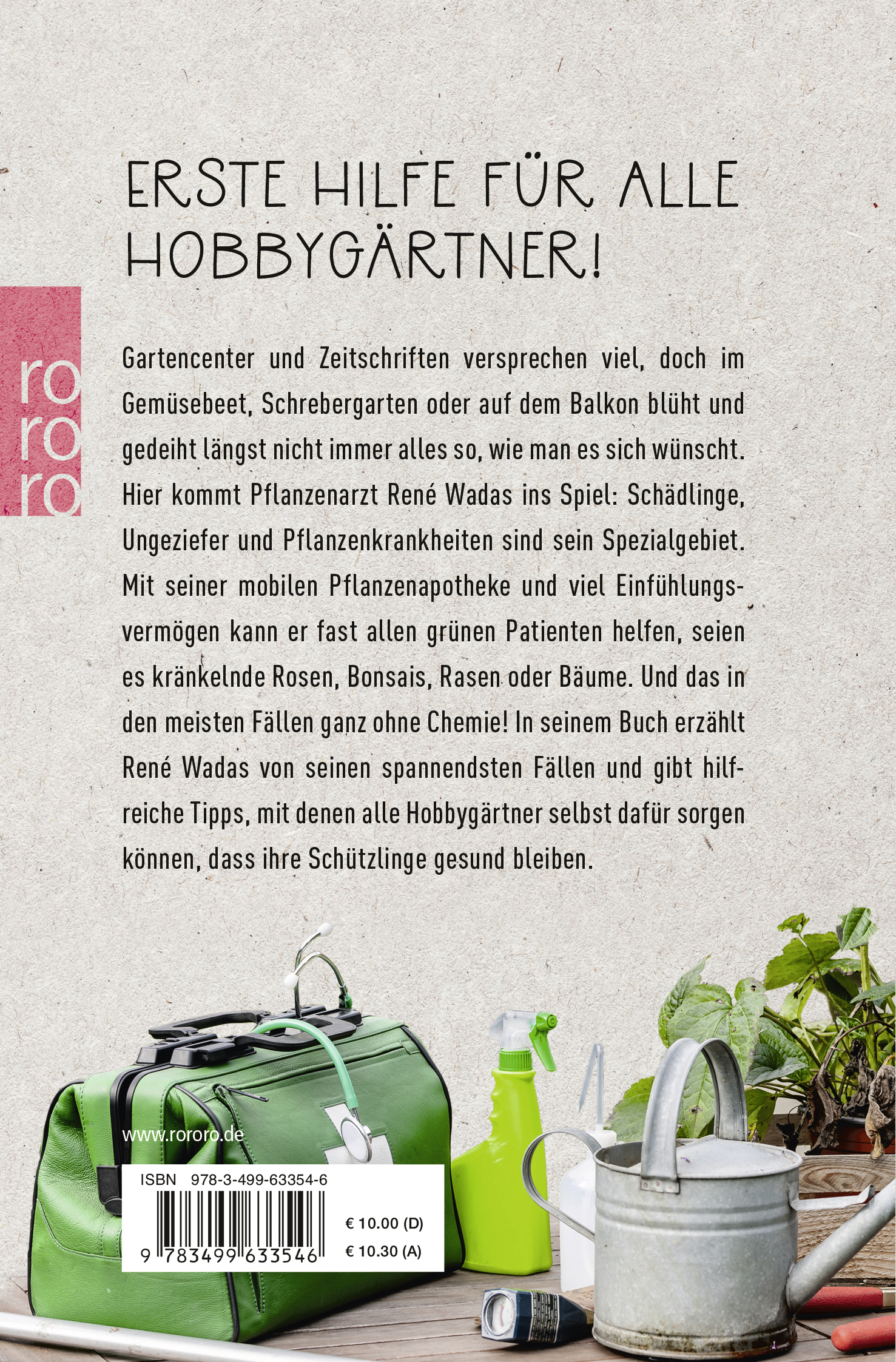 Gartencenter und Zeitschriften versprechen viel, doch im Gemüsebeet, Schrebergarten oder auf dem Balkon blüht und gedeiht längst nicht immer alles so, wie man es sich wünscht. Hier kommt Pflanzenarzt René Wadas ins Spiel: Schädlinge, Ungeziefer und Pflanzenkrankheiten sind sein Spezialgebiet. Mit seiner mobilen Pflanzenapotheke und viel Einfühlungsvermögen kann der Pflanzendoktor fast allen grünen Patienten helfen, seien es kränkelnde Rosen, Bonsais, Rasen oder Bäume. Und das in den meisten Fällen ganz ohne Chemie! In seinem Buch erzählt er von seinen spannendsten Fällen und gibt hilfreiche Tipps, mit denen alle Hobbygärtner selbst dafür sorgen können, dass ihre Schützlinge gesund bleiben.