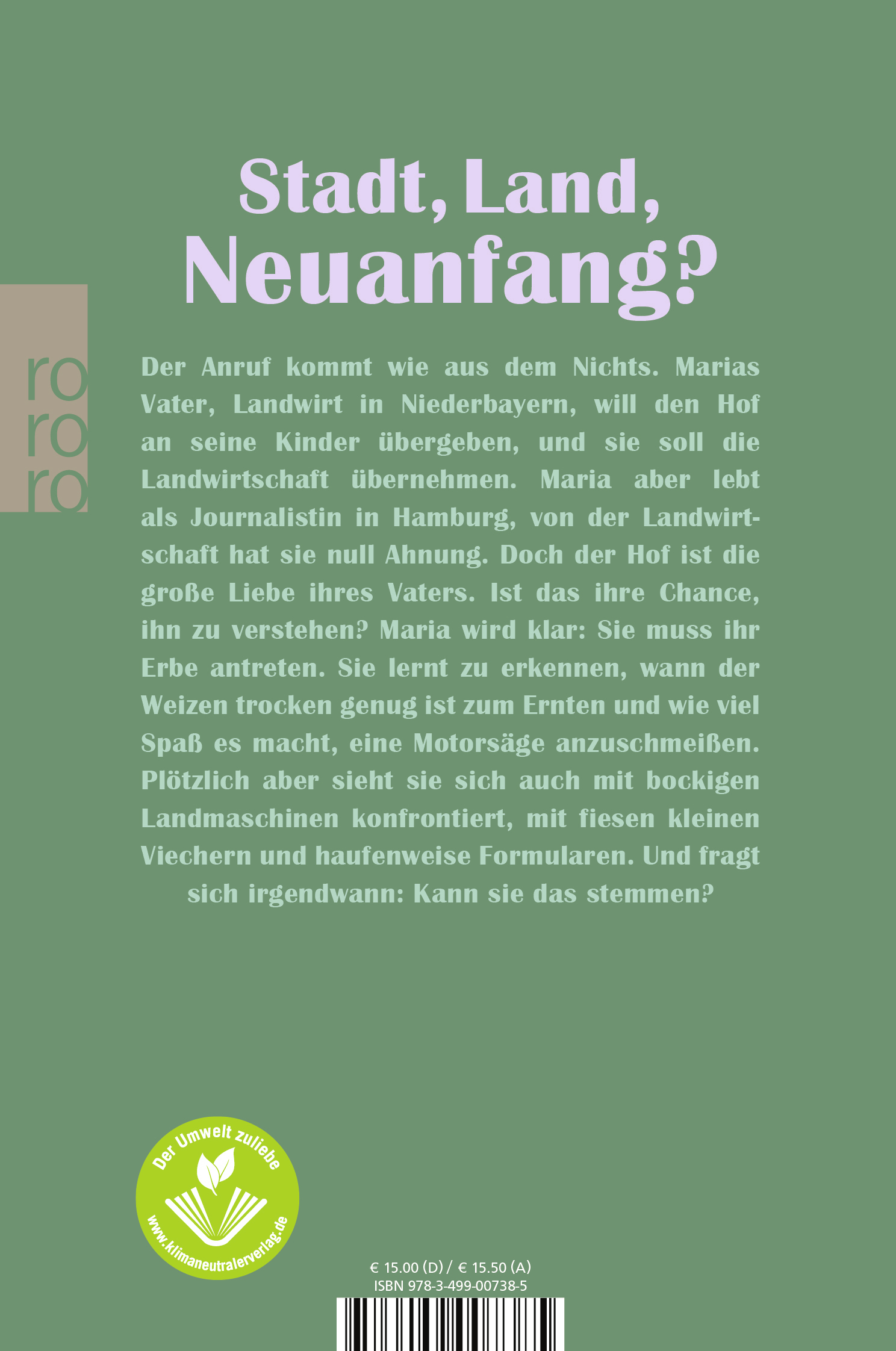Der Anruf kommt wie aus dem Nichts. Marias Vater, Landwirt in Niederbayern, will den Hof an seine Kinder übergeben, und sie soll die Landwirtschaft übernehmen. Maria aber lebt als Journalistin in Hamburg, von der Landwirtschaft hat sie null Ahnung. Doch der Hof ist die große Liebe ihres Vaters. Ist das ihre Chance, ihn zu verstehen? Maria wird klar: Sie muss ihr Erbe antreten. Sie lernt zu erkennen, wann der Weizen trocken genug ist zum Ernten und wie viel Spaß es macht, eine Motorsäge anzuschmeißen. Plötzlich aber sieht sie sich auch mit bockigen Landmaschinen konfrontiert, mit fiesen kleinen Viechern und haufenweise Formularen. Und fragt sich irgendwann: Kann sie das stemmen?