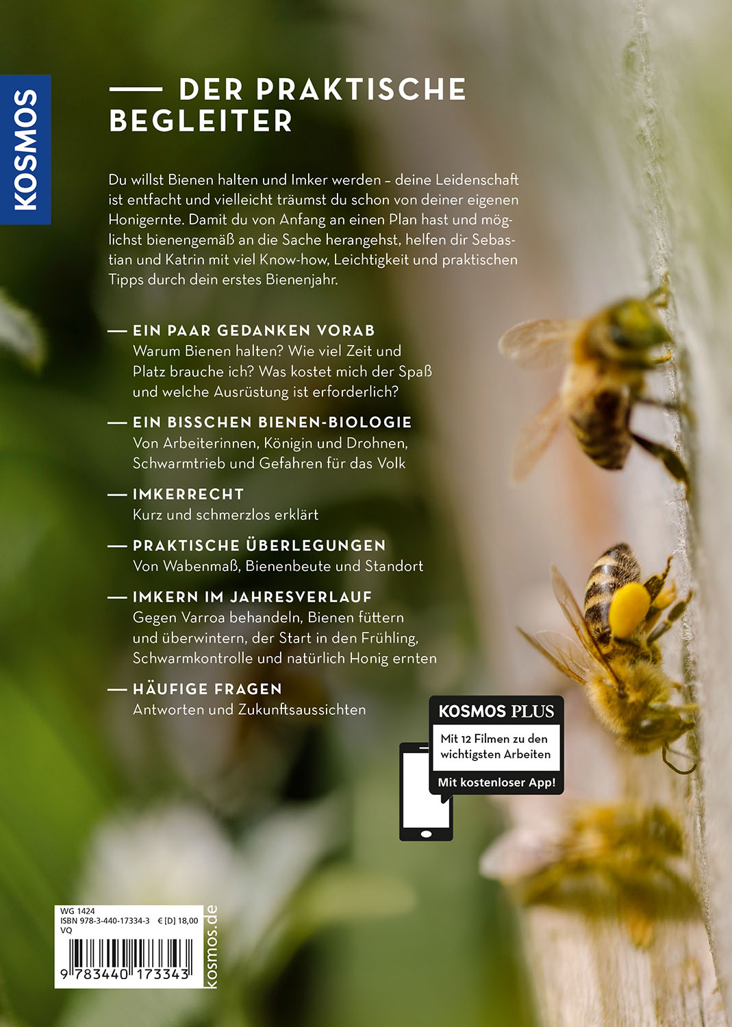 Dieser Ratgeber führt Jungimker Schritt für Schritt durch das Bienenjahr - naturnah, ökologisch und mit Liebe zu den Bienen. Die erfahrenen Autoren zeigen, wann was am Bienenvolk gemacht wird: von der Standortwahl über Honigraum aufsetzen, Schwarmvermeidung, Honigernte und Varroabehandlung bis zum Einfüttern. Es wird genau erklärt, wie die Arbeiten am einfachsten umzusetzen sind. 12 Filme, kostenlos abrufbar über die KOSMOS-PLUS-APP, geben zusätzliche Sicherheit bei allen Arbeitsschritten.