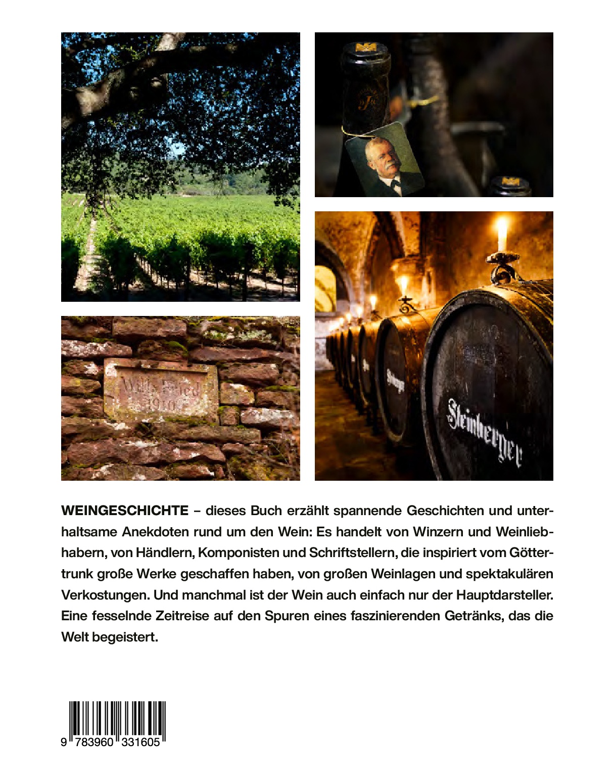 WEINGESCHICHTE UNTERHALTSAM ENTDECKENDie Geschichte des Weins ist mehr als Dionysos und Bacchus, mehr als Griechen und Römer. Anekdoten und Mythen ranken sich um den Wein und in jeder Epoche schrieb er seine eigene Geschichte. In verschiedenen Kapiteln wird die Geschichte des Weins in seinen Anfängen und in der Neuzeit beschrieben, unterhaltsam und mit vielen kurzweiligen Nebengeschichten. Von den Anfängen des Weins bis in die Neuzeit werden die Entwicklungen im Weinbau rund um Schaum- und Süßwein beleuchtet. Hieran schließt sich die Zeit ab 1985 bis heute mit dem Glykol- und Weinskandal, Wissenswertem über den VDP, Moderne Techniken und geschützte Herkünfte an. Weiterhin wird ein Überblick über internationale Weinländer geliefert und die verschiedenen Methoden des Weinausbaus vom Holzfass über Edelstahl und Beton beleuchtet. Das Kapitel Orange-Wein entspricht zugleich einer Stilkritik.