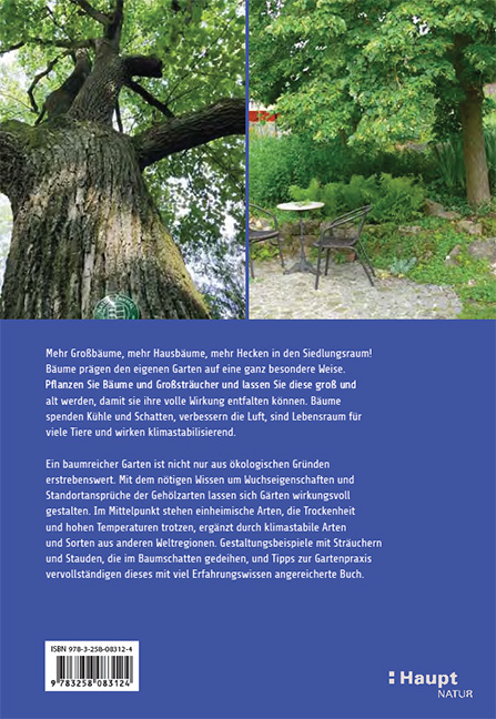 In jeden Garten gehört wenigstens ein Baum!Einheimische Arten, die Trockenheit und hohen Temperaturen trotzen.Bäume und Sträucher wirken klimastabilisierend.Gartentipps für die eigene kleine Baumschule.Mehr Großbäume, mehr Hausbäume, mehr Hecken in den Siedlungsraum!Pflanzen Sie zum eigenen Wohlbefinden und zum Wohle der Allgemeinheit Bäume und Großsträucher und lassen Sie diese groß und alt werden, sodass viel Holz in Form von Stämmen, starken Ästen und Wurzeln heranwächst.Ein Garten ohne wenigstens einen Baum ist kein richtiger Garten. Bäume lösen Emotionen aus, sie beschäftigen die Sinne, sie spenden Kühle und Schatten. Bäume verbessern die Luft, reichern sie mit Sauerstoff an. Und sie sind Lebensraum für viele Tiere, vor allem für Vögel. Wohlfahrtswirkung ist der zusammenfassende Begriff dieser Effekte. Dazu zählt auch die Funktion der Bäume und Wälder als Kohlenstoffsenke, die in Zeiten des Klimawandels im Fokus steht. Bäume und Sträucher lagern in ihrem Holz Kohlenstoff ein und wirken so klimastabilisierend.Ein baumreicher Garten ist nicht nur aus ökologischen Gründen erstrebenswert, er hat auch einen hohen ästhetischen Reiz und Erlebniswert. Mit dem nötigen Wissen um Wuchseigenschaften und Standortansprüche der Gehölzarten lassen sich Gärten spannungsreich gestalten. Die Autorin stellt einheimische Arten, die Trockenheit und hohen Temperaturen trotzen, in den Mittelpunkt, ergänzt durch das mehr gärtnerische Empfehlungssortiment der Baumschulen mit klimastabilen Arten und Sorten aus anderen Weltregionen. Robuste Obstgehölze sind auch dabei. Gestaltungsbeispiele mit Sträuchern und Stauden, die im Baumschatten gedeihen, und Gartenpraxis mit eigener kleiner Baumschule vervollständigen das mit viel Erfahrungswissen angereicherte Buch.
