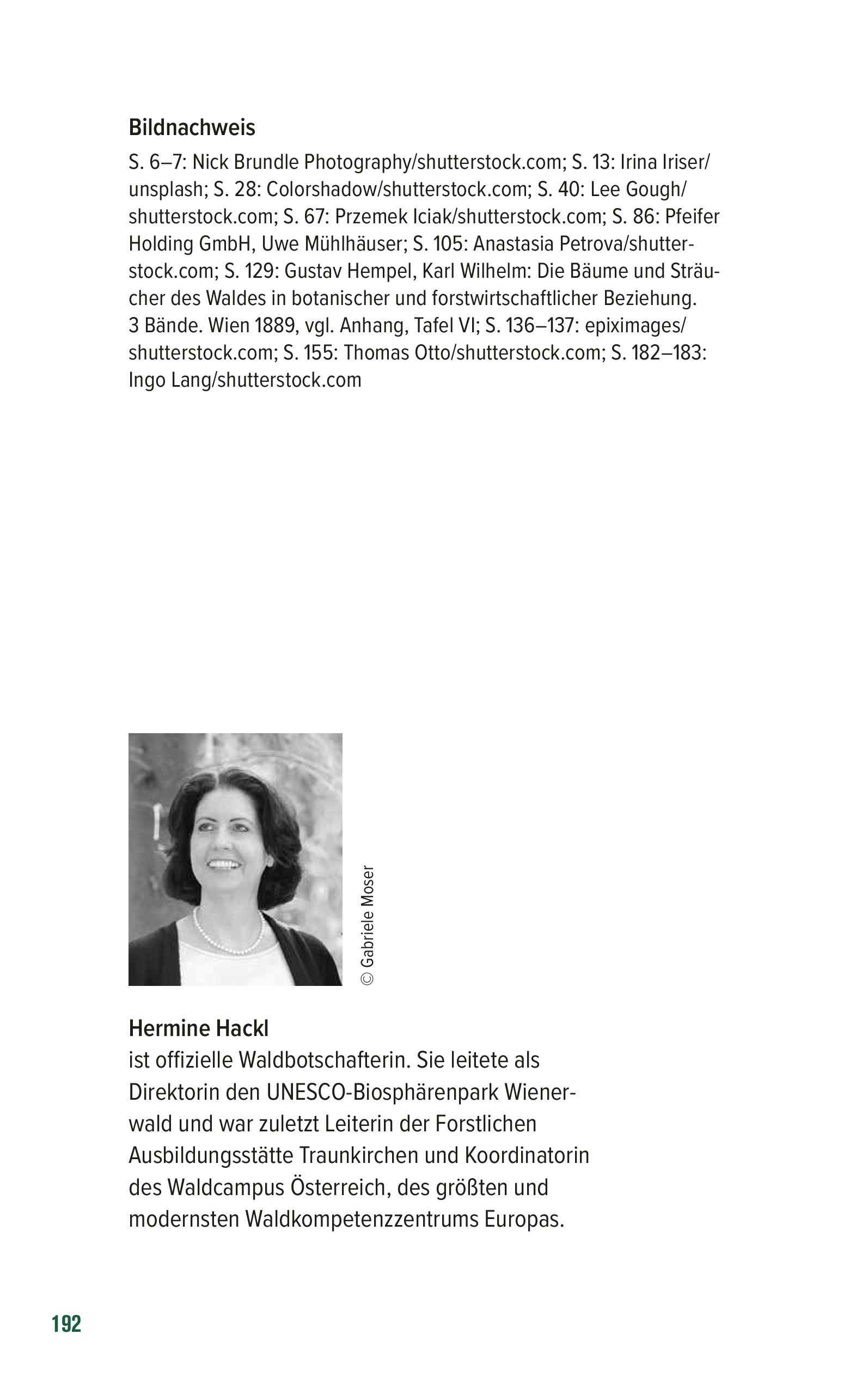 Hermine Hackl ist offizielle Waldbotschafterin. Sie leitete als Direktorin den UNESCO-Biosphärenpark Wienerwald und war zuletzt Leiterin der Forstlichen Ausbildungsstätte Traunkirchen und Koordinatorin des Waldcampus Österreich, des größten und modernsten Waldkompetenzzentrums Europas.