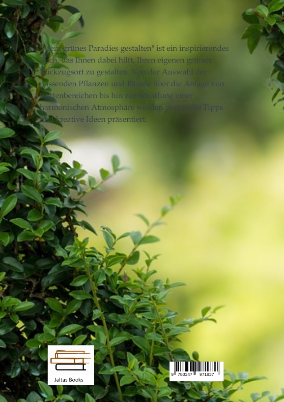 "Mein grünes Paradies gestalten" ist ein inspirierendes Buch, das Ihnen dabei hilft, Ihren eigenen grünen Rückzugsort zu gestalten. Von der Auswahl der passenden Pflanzen und Bäume über die Anlage von Gartenbereichen bis hin zur Schaffung einer harmonischen Atmosphäre werden praktische Tipps und kreative Ideen präsentiert.