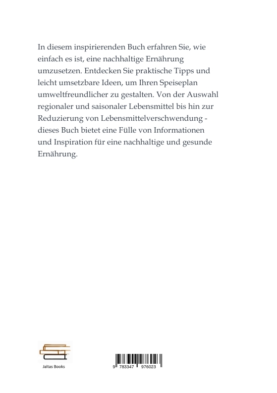 In diesem inspirierenden Buch erfahren Sie, wie einfach es ist, eine nachhaltige Ernährung umzusetzen. Entdecken Sie praktische Tipps und leicht umsetzbare Ideen, um Ihren Speiseplan umweltfreundlicher zu gestalten. Von der Auswahl regionaler und saisonaler Lebensmittel bis hin zur Reduzierung von Lebensmittelverschwendung - dieses Buch bietet eine Fülle von Informationen und Inspiration für eine nachhaltige und gesunde Ernährung.