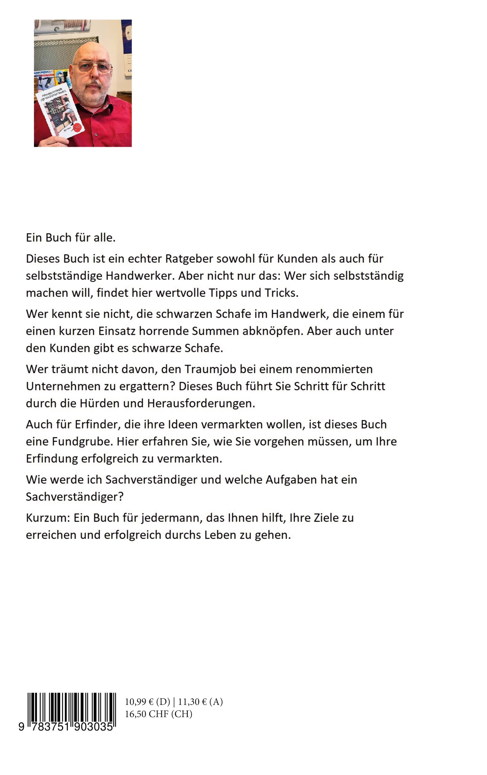 Ein Buch für alle.Dieses Buch ist ein echter Ratgeber sowohl für Kunden als auch für selbstständige Handwerker. Aber nicht nur das: Wer sich selbstständig machen will, findet hier wertvolle Tipps und Tricks.Wer kennt sie nicht, die schwarzen Schafe im Handwerk, die einem für einen kurzen Einsatz horrende Summen abknöpfen. Aber auch unter den Kunden gibt es schwarze Schafe.Wer träumt nicht davon, den Traumjob bei einem renommierten Unternehmen zu ergattern? Dieses Buch führt Sie Schritt für Schritt durch die Hürden und Herausforderungen.Auch für Erfinder, die ihre Ideen vermarkten wollen, ist dieses Buch eine Fundgrube. Hier erfahren Sie, wie Sie vorgehen müssen, um Ihre Erfindung erfolgreich zu vermarkten.Wie werde ich Sachverständiger und welche Aufgaben hat ein Sachverständiger?Kurzum: Ein Buch für jedermann, das Ihnen hilft, Ihre Ziele zu erreichen und erfolgreich durchs Leben zu gehen.