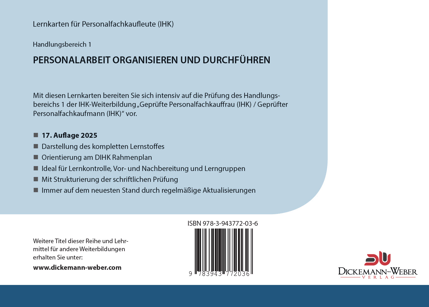 Lernkarten zur Vorbereitung auf die Prüfung des Handlungsbereichs 1 "Personalarbeit organisieren und durchführen" für Personalfachkauffrau (IHK) / Personalfachkaufmann (IHK).