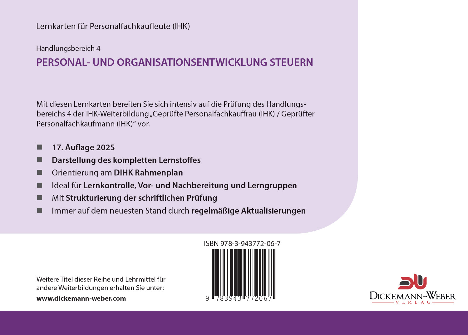 Lernkarten zur Vorbereitung auf die Prüfung des Handlungsbereichs 4 "Personal- und Organisationsentwicklung steuern" für Personalfachkauffrau (IHK) / Personalfachkaufmann (IHK).
