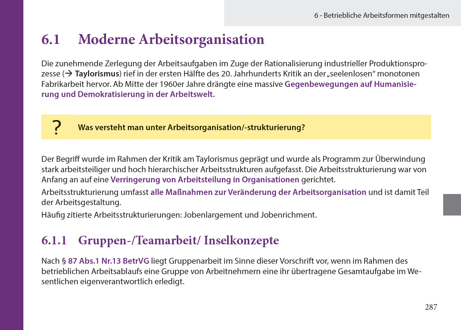 Betriebliche Arbeitsformen mitgestalten, Grundsätze moderner Arbeits- und Lernorganisationen umsetzen