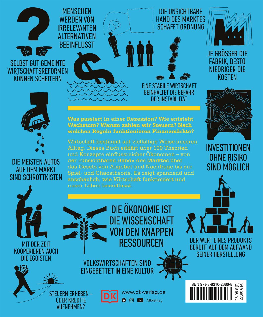 In Zeiten, in denen Wirtschaftsthemen die Nachrichten beherrschen, ist es wichtiger denn je, über die Hintergründe Bescheid zu wissen. "Das Wirtschaftsbuch" erklärt auf spannende, moderne und leicht verständliche Weise über 100 zentrale Theorien der Wirtschaftswissenschaften, mit denen wir das Zusammenspiel der Märkte und Interessen sowie den vielfältigen Einfluss wirtschaftlicher Entwicklungen auf unser Leben verstehen können.
