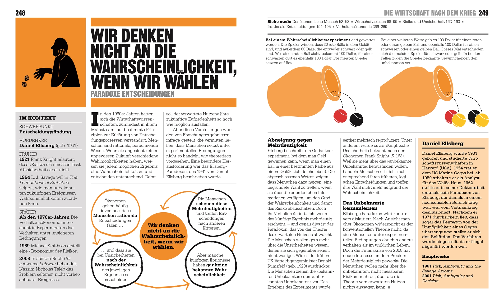 Anhand übersichtlicher Diagramme werden die zentralen Gedankengänge veranschaulicht. Porträts wichtiger Ökonomen und hervorgehobene Kurz-Biografien liefern umfassende Informationen zum Leben der Wissenschaftler und ihren Thesen. Außerdem wird jede Theorie durch übersichtliche Querverweise in einen historischen Zusammenhang gestellt und einem speziellen Schwerpunkt zugeordnet. So entsteht eine spannende Einführung in die Ökonomie und ihre unterschiedlichen Fachbereiche.