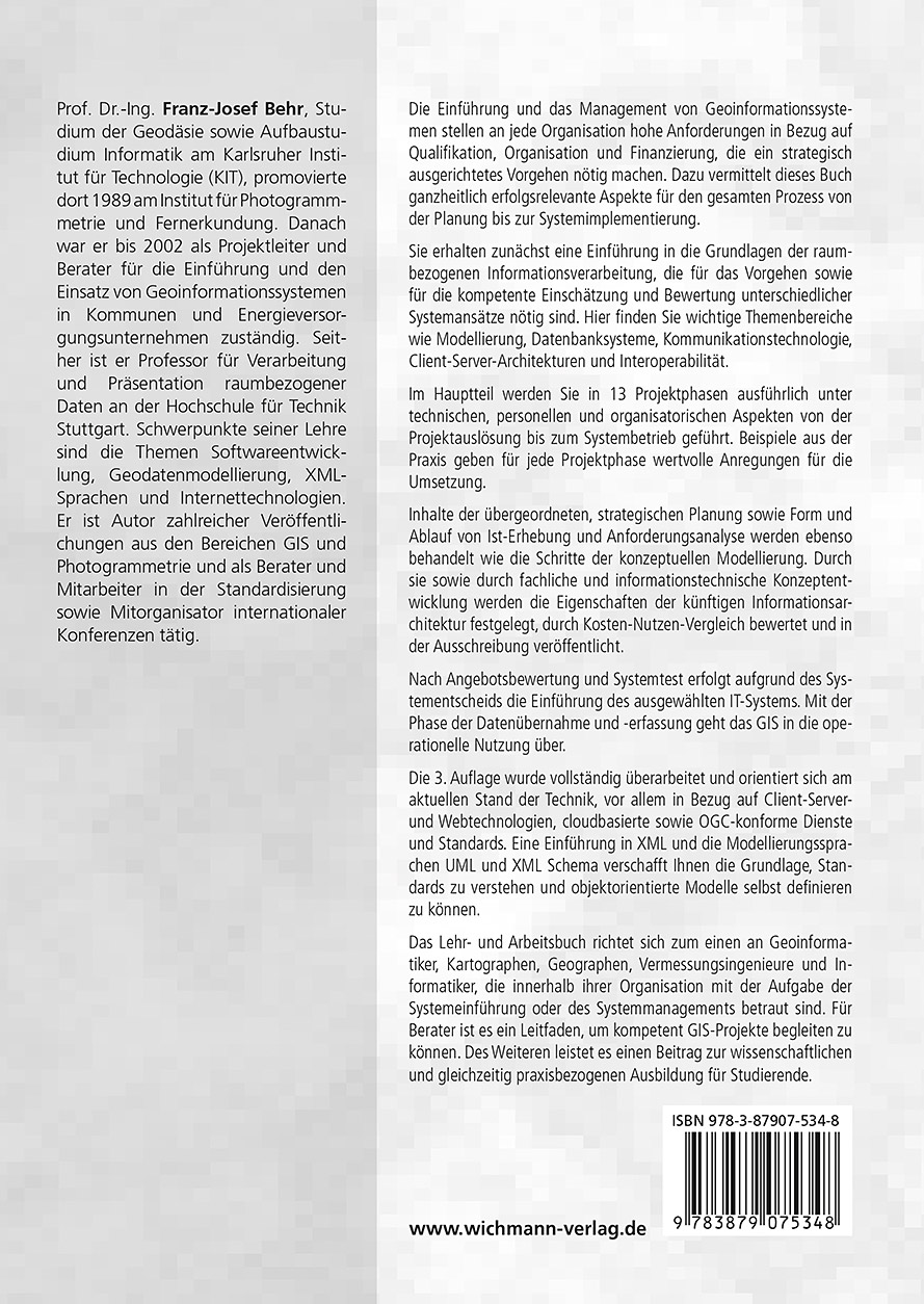 Prof. Dr.-Ing. Franz-Josef Behr ist Professor für raumbezogene Informationsverarbeitung an der Hochschule für Technik Stuttgart. Schwerpunkte seiner Lehre sind die Themen Softwareentwicklung, Geodatenmodellierung, XML-Sprachen und Internettechnologien. Franz-Josef Behr ist Autor zahlreicher Veröffentlichungen aus den Bereichen GIS und Photogrammetrie.