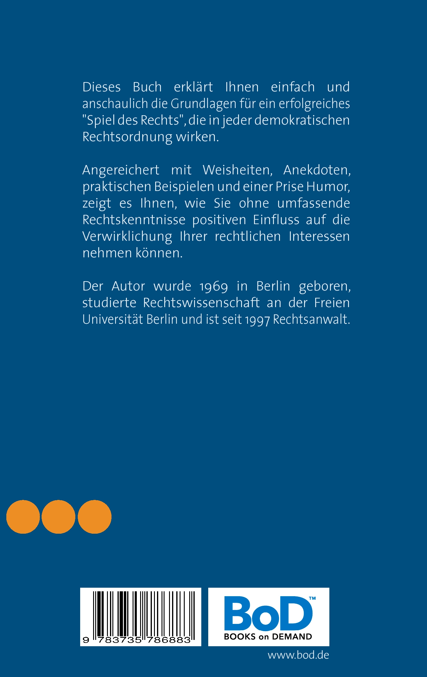 Dieses Buch erklärt Ihnen einfach und anschaulich die Grundlagen für ein erfolgreiches "Spiel des Rechts", die in jeder demokratischen Rechtsordnung wirken.Lesermeinungen des Internet-Literaturnetzwerks "Lovelybooks":"Grundsätzliche Darstellung des Rechts und wie man sich am besten in diesem Spiel bewegt.""Guter Ratgeber für den Rechtslaien""Ein sehr hilfreicher juristischer Wegweiser""Sehr informativ und verständlich!""Der Rechtsanwalt Uletilovic legt hier einen interessanten juristischen Wegweiser vor, der humorvoll und locker und doch auch ernsthaft und wertschätzend geschrieben ist.""Dieser kleine, kurzweilig zu lesende Ratgeber bündelt hintergründige Informationen und sorgt für einige Aha-Effekte."