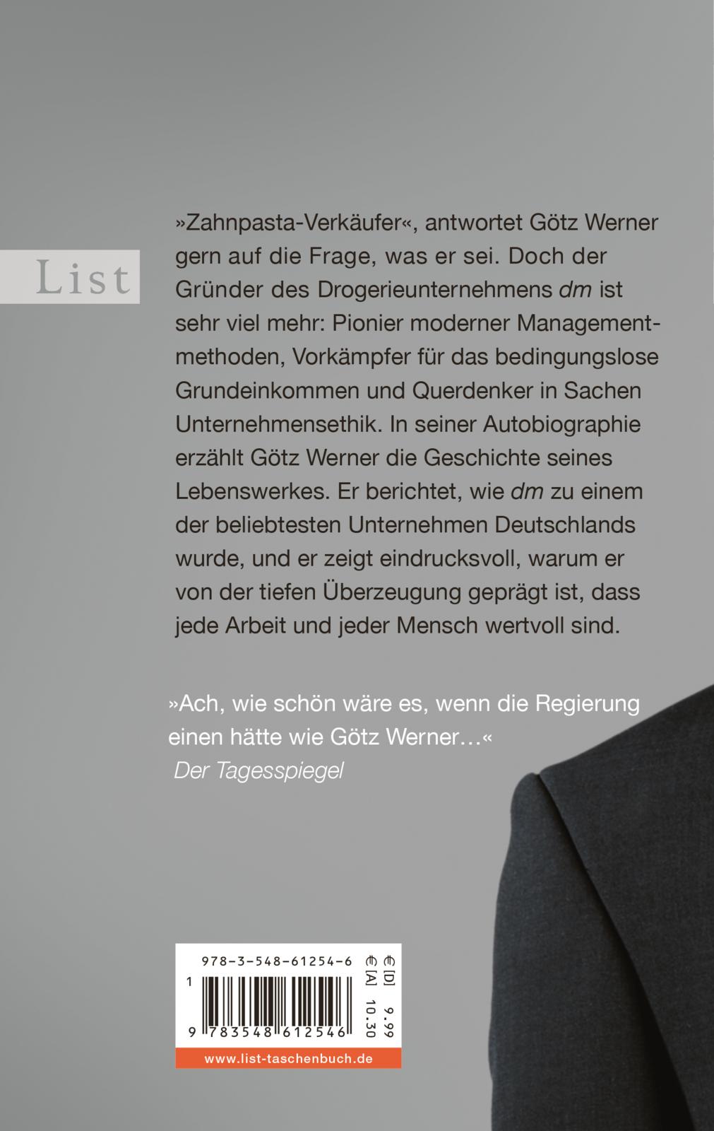 | Schlagworte | Anthroposoph • Autobiografie • Autobiographien • Deutschland • DM-Drogerie (Firma) • DM-Drogerie (Unternehmen) • Drogerie • Grundeinkommen • Gründer • Management • Manager • Rudolf Steiner • Sachbuch • Unternehmensethik • Unternehmer • Unternehmer; Biografien • Wirtschaft |
