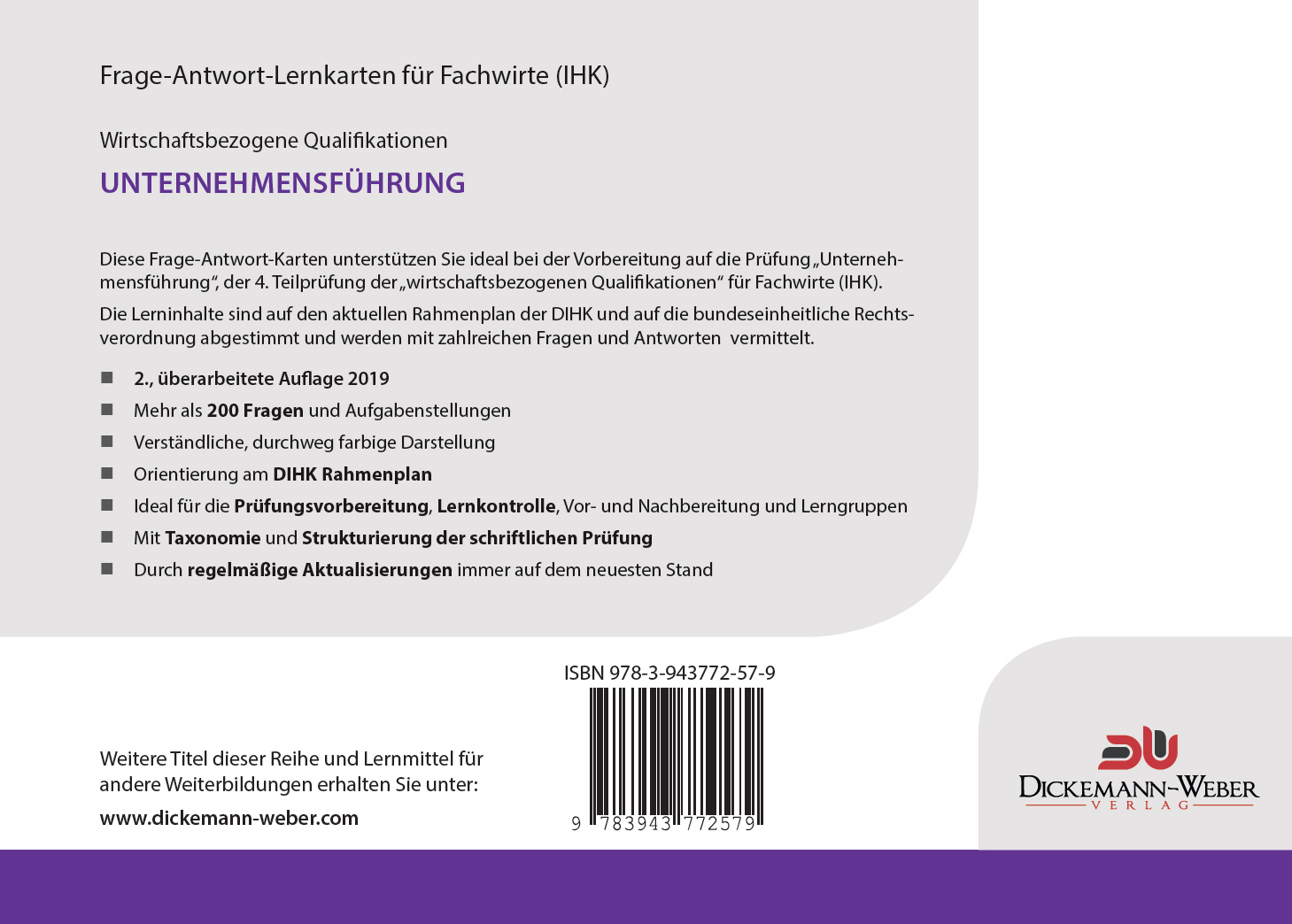 Prüfung Fachwirt (IHK)‐ Frage‐Antwort‐Karten Wirtschaftsbezogene Qualifikationen 4 Unternehmensführung