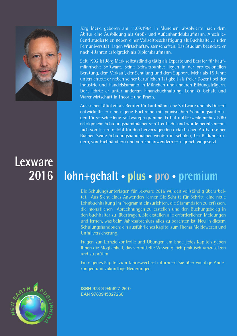 Jörg Merk, geboren am 11.09.1964 in München, absolvierte nach dem Abitur eine Ausbildung als Groß- und Außenhandelskaufmann. Anschließend studierte er, neben einer Vollzeitbeschäftigung als Buchhalter, an der Fernuniversität Hagen Wirtschaftswissenschaften. Das Studium beendete er nach 4 Jahren erfolgreich als Diplomkaufmann. Seit 1992 ist Jörg Merk selbstständig tätig als Experte und Berater für kaufmännische Software. Seine Schwerpunkte liegen in der professionellen Beratung, dem Verkauf, der Schulung und dem Support. Mehr als 15 Jahre unterrichtete er neben seiner beruflichen Tätigkeit als freier Dozent bei der Industrie und Handelskammer in München und anderen Bildungsträgern. Dort lehrte er unter anderem Finanzbuchhaltung, Lohn & Gehalt und Warenwirtschaft in Theorie und Praxis. Aus seiner Tätigkeit als Berater für kaufmännische Software und als Dozent entwickelte er eine eigene Buchreihe mit praxisnahen Schulungsunterlagen für verschiedene Softwareprogramme. Er hat mittlerweile mehr als 90 erfolgreiche Schulungshandbücher veröffentlicht und wurde bereits mehrfach von Lesern gelobt für den hervorragenden didaktischen Aufbau seiner Bücher. Seine Schulungshandbücher werden in Schulen, bei Bildungsträgern, von Fachhändlern und von Endanwendern erfolgreich eingesetzt.
