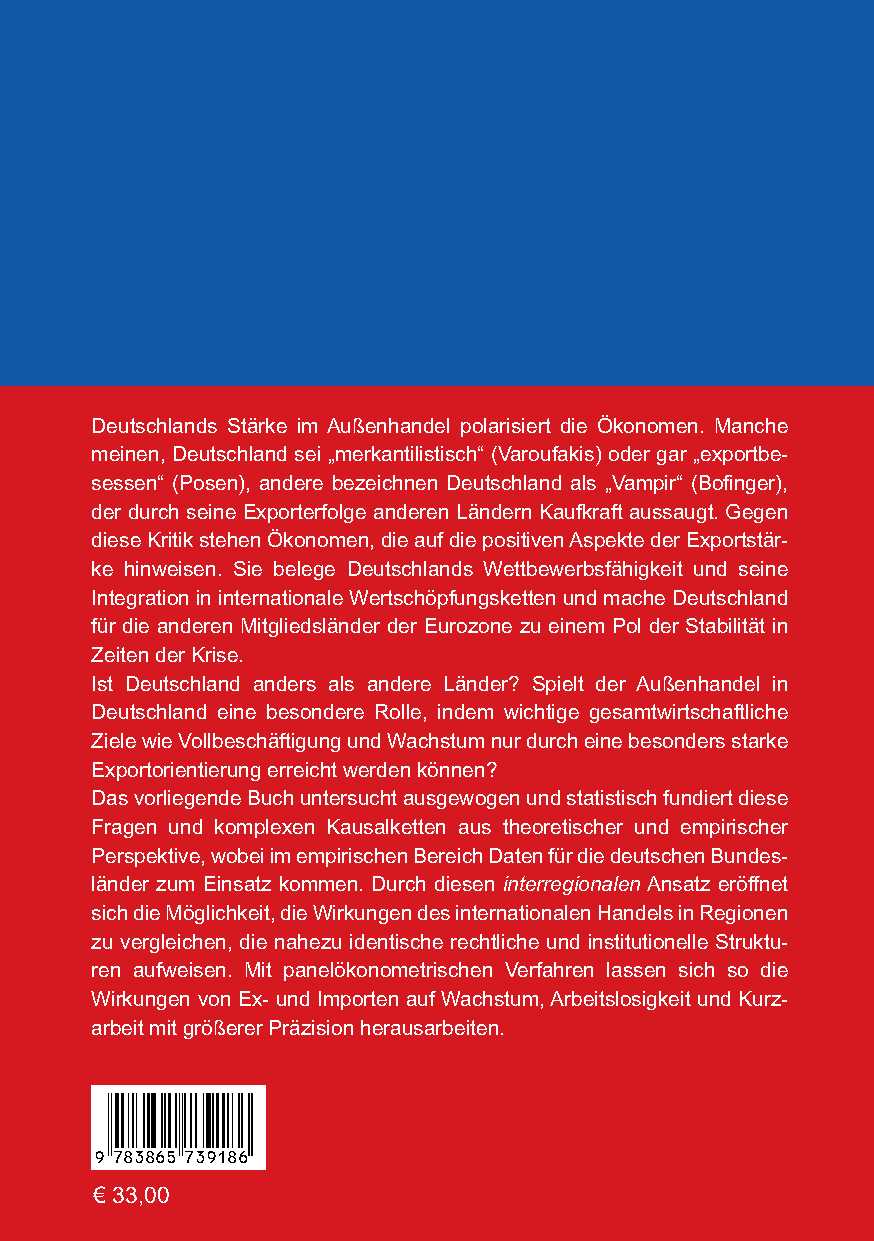 Das vorliegende Buch untersucht ausgewogen und statistisch fundiert diese Fragen und komplexen Kausalketten aus theoretischer und empirischer Perspektive, wobei im empirischen Bereich Daten für die deutschen Bundesländer zum Einsatz kommen. Durch diesen interregionalen Ansatz eröffnet sich die Möglichkeit, die Wirkungen des internationalen Handels in Regionen zu vergleichen, die nahezu identische rechtliche und institutionelle Strukturen aufweisen. Mit panelökonometrischen Verfahren lassen sich so die Wirkungen von Ex- und Importen auf Wachstum, Arbeitslosigkeit und Kurzarbeit mit größerer Präzision herausarbeiten.