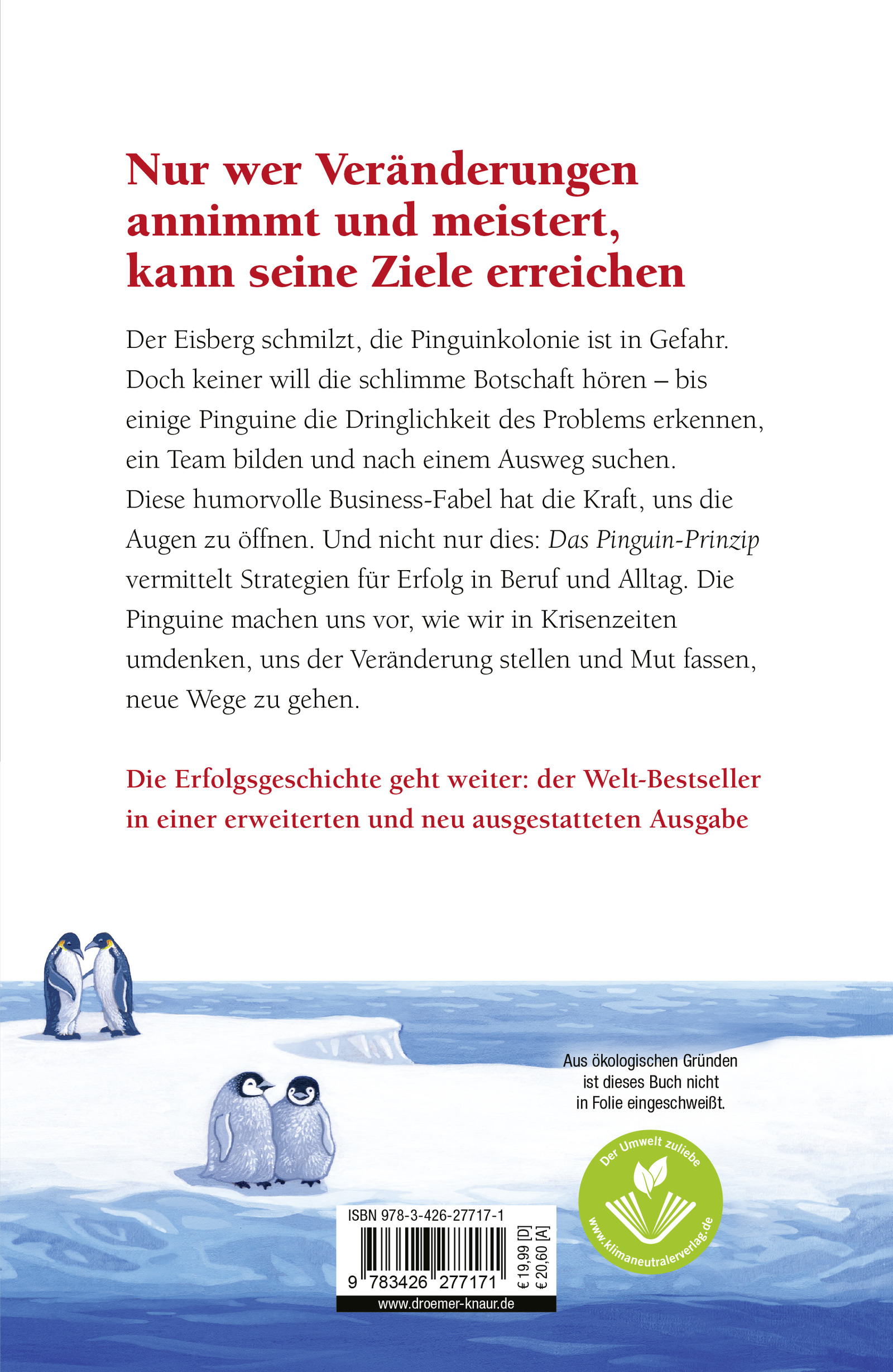 Diese humorvolle Business-Fabel hat die Kraft, uns die Augen zu öffnen. Und nicht nur dies: "Das Pinguin-Prinzip" vermittelt Strategien für Erfolg im Berufs- und Alltagsleben. Die Pinguine machen uns vor, wie wir in Krisen-Zeiten umdenken, uns der Veränderung stellen und Mut zu Neuem fassen. Sie zeigen wie wir schwierige Situationen meistern und auf unkonventionellen Wegen unsere Ziele erreichen können.
