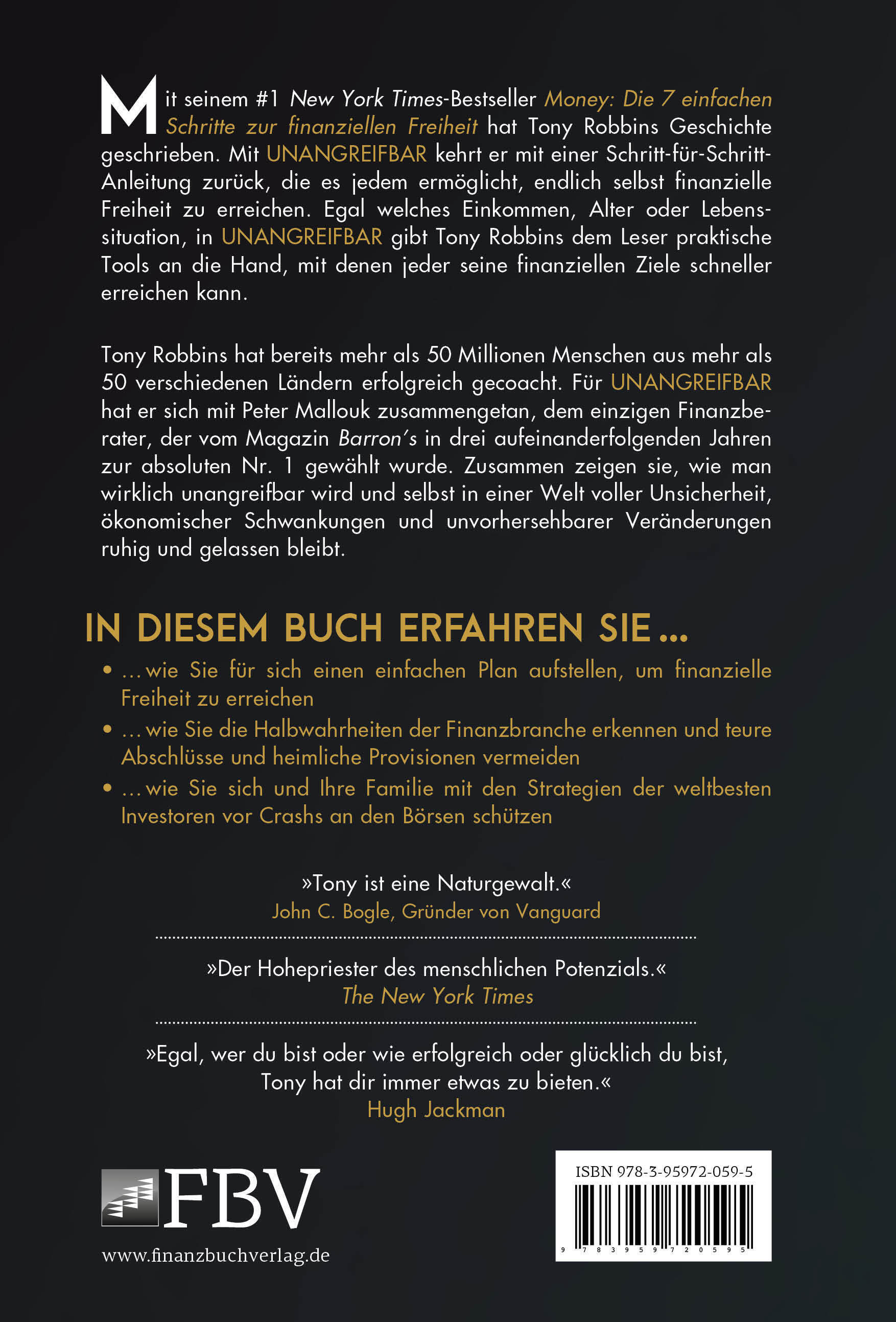 »Tonys Kraft ist übermenschlich« Oprah Winfrey »Der Hohepriester des menschlichen Potenzials. Die Welt kann nicht genug Anthony Robbins bekommen.« The New York Times »Egal, wer du bist oder wie erfolgreich oder glücklich du bist, Tony hat dir immer etwas zu bieten.« Hugh Jackman »Tonys unglaubliche Fähigkeiten, die Welt, die Menschen und die menschliche Natur zu verstehen, macht ihn zum ultimativen Coach. Er weiß, was man braucht, um sich selbst zu übertreffen ... und zu gewinnen.« André Agassi »Er hat eine großartige Gabe. Er hat die Macht zu inspirieren.« Bill Clinton