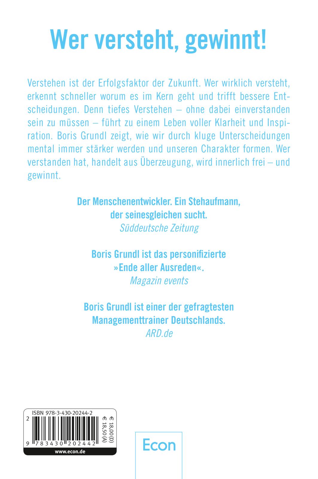 Für Boris Grundl ist »verstehen, ohne einverstanden sein zu müssen« der entscheidende Erfolgsfaktor der Zukunft. Es ist ein lohnender Weg: erst klug hinhören, dann differenziert bewerten, die Perspektive wechseln, den eigenen Standpunkt prüfen, Haltung gewinnen, konsequent handeln und schließlich der eigenen Überzeugung folgen. So entsteht innere Freiheit.