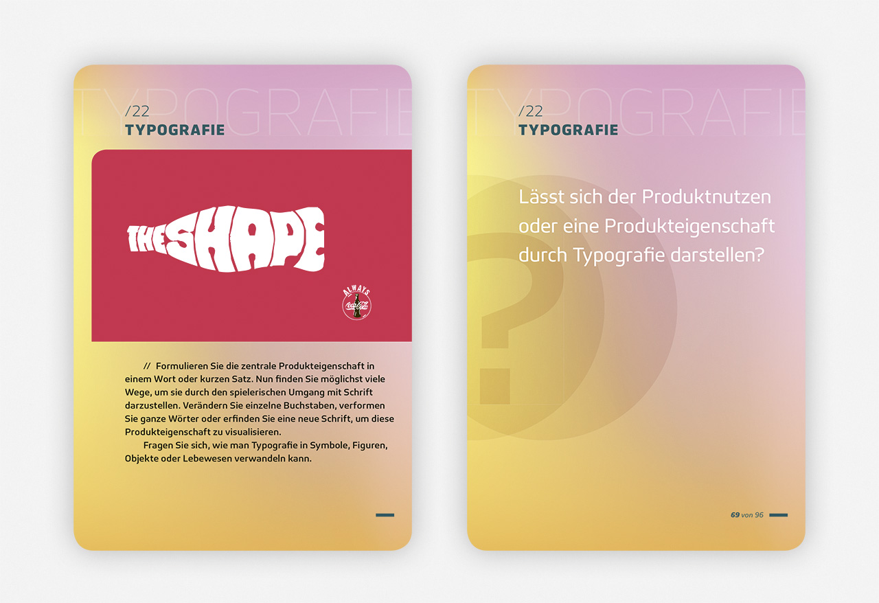 | Zusatzinfo | Powervoller Kreativ-Input auf 96 beidseitig farbig bedruckten Brainstorming-Karten mit ideen-triggernden Fragen und konkretisierenden, illustrierten Denkanstößen. Mit einem 20seitigen Booklet in einer stabilen Box mit Relieflack. |