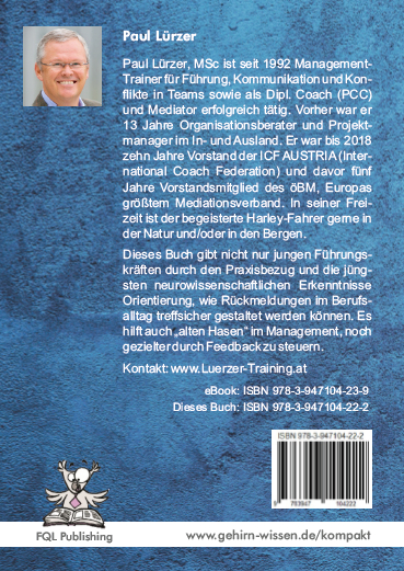 Was bedeutet besseres Feedback im Bereich des Führens von Menschen in der Arbeitswelt?Paul Lürzer begleitet mit Erscheinen der ersten Auflage des Buches seit mehr als 27 Jahren Führungskräfte im (Team-)Coaching und Training. Aus diesem Schatz an Erfahrungen und neuesten neurowissenschaftlichen Erkenntnissen entstand dieses Buch.Was heißt gehirngerechtes Feedback? Warum ist Feedback aus Sicht der Gehirn-und Führungsforschung allzu oft unklar? Wie kann Feedback verständlich gestaltet werden, um die erhofften Ergebnisse zu erzielen? Aus welchem Grund ist Verhalten veränderbar und die dahinter stehende Person nicht? Wie können Ziele durch gezieltes Feedback besser erreicht werden?Diese und weitere Fragen werden aus Sicht des Führungsalltages gestellt und mit neurowissenschaftlichem Fokus erklärt und beantwortet. Damit wird verständlich und aus neuen Blickwinkeln nachvollziehbar, was lange Zeit im Unklaren lag oder gar falsch interpretiert worden ist. Ein Buch für Führungskräfte, die für den Alltag praxistaugliche Modelle mit wissenschaftlichem Hintergrund schätzen. Mit diesem Know-how klappt besseres Feedback.