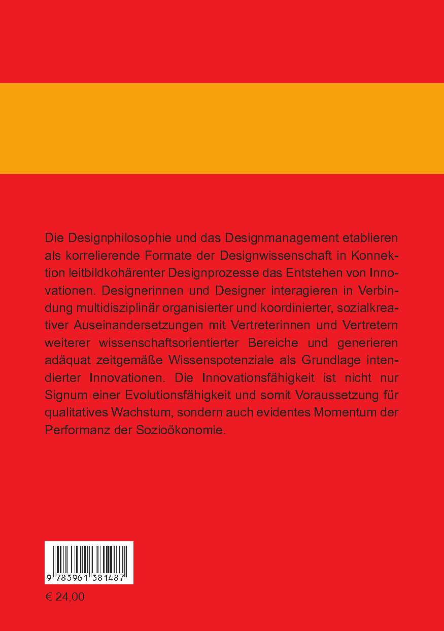 Die Designphilosophie und das Designmanagement etablieren als korrelierende Formate der Designwissenschaft in Konnektion leitbildkohärenter Designprozesse das Entstehen von Innovationen. Designerinnen und Designer interagieren in Verbindung multidisziplinär organisierter und koordinierter, sozialkreativer Auseinandersetzungen mit Vertreterinnen und Vertretern weiterer wissenschaftsorientierter Bereiche und generieren adäquat zeitgemäße Wissenspotenziale als Grundlage intendierter Innovationen. Die Innovationsfähigkeit ist nicht nur Signum einer Evolutionsfähigkeit und somit Voraussetzung für qualitatives Wachstum, sondern auch evidentes Momentum der Performanz der Sozioökonomie.