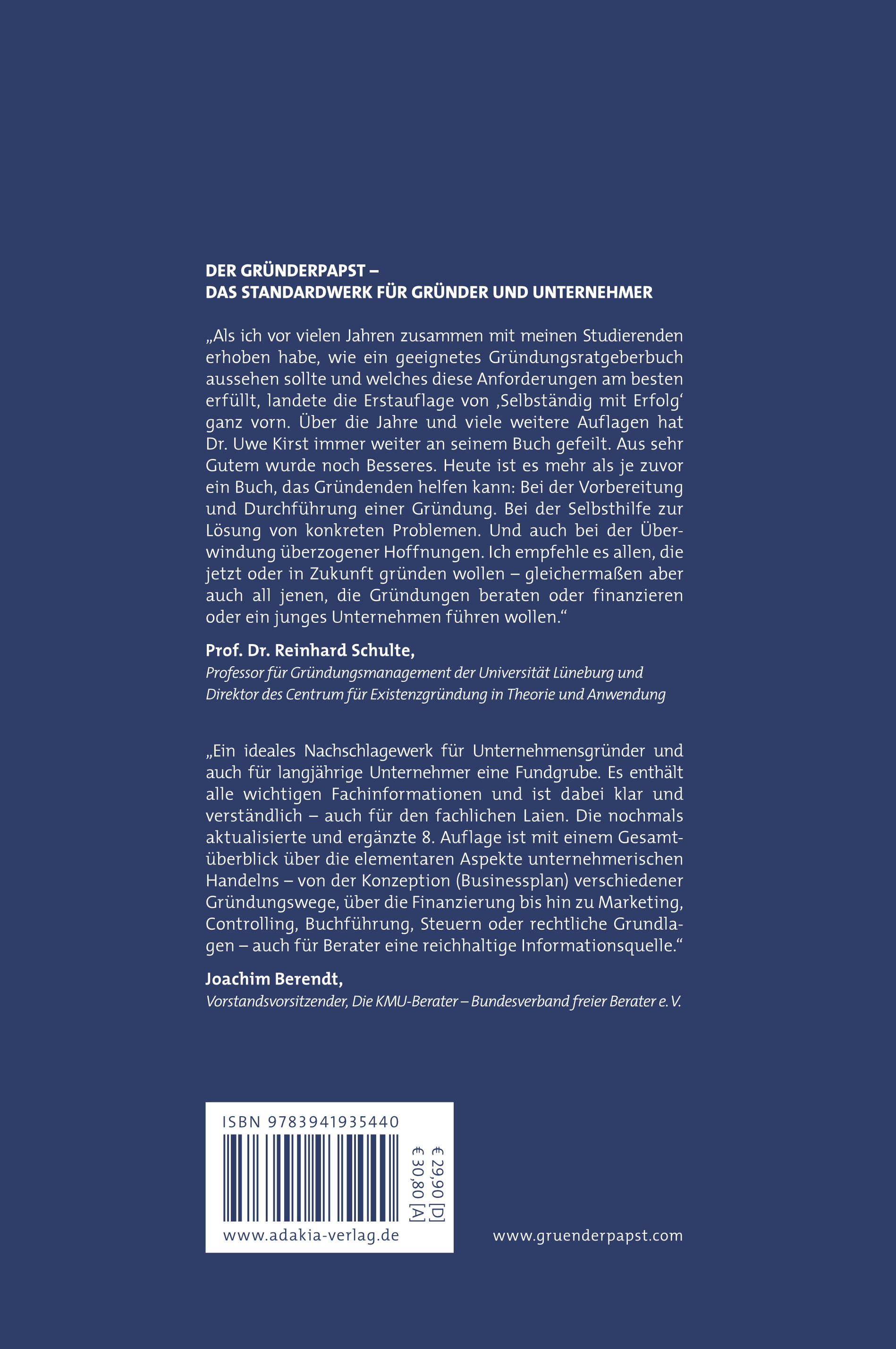 hinaus informiert Sie „Der Gründerpapst“ über Buchhaltung, Steuerpflichten, Rechtsformen, Arbeitsrecht, Kalkulation und