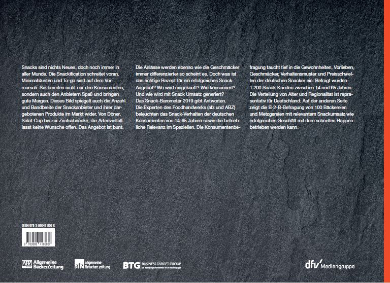 Die Snackification schreitet voran, doch wie wird das Snackgeschäft erfolgreich aufgezogen? Was will der Verbraucher? Und wie bringt es den Anbietern gute Margen? Das Snack-Barometer vereint zwei Studien in einem und bietet somit einen ganzheitlichen Blick aus allen Perspektiven auf das Snackgeschäft. Die repräsentative Konsumentenbefragung (B2C) betrachtet das Snackverhalten der Snack-Kunden in Deutschland zwischen 14 und 65 Jahren Bevölkerungsrepräsentative Stichprobe von 1.200 Snack-Konsumenten). Ein gezielter Fokus ist die Relevanz im Foodhandwerk in den Bäckereien und Metzgereien. Wie unterscheiden sich die Kunden. Was kann man voneinander lernen?-Welche Anbieter werden bevorzugt aufgesucht und warum?-Welche Snacks wünscht sich der Kunde-Erfüllt das Produktangebot die Erwartungen?-Zu welchen Anlässen werden Snacks gekauft-Wo werden diese verzehrt-Wie preissensibel sind Snack-Kunden und welche Maßnahmen rechtfertigen höhere PreiseDie B2B-Befragung im Foodhandwerk, mit den Geschäftsführern und Entscheidungsträgern der Bäckereien und Fleischereien zeigt die Potenziale hinsichtlich Umsatzgröße und Margen sowie deren Erfolgsfaktoren. Das Snackbarometer ist für die erfolgreiche Ausrichtung des Snackgeschäftes für jeden Anbieter von Snacks, speziell für Bäcker und Fleischer, aber auch für sämtliche vor- und nachgelagerten Prozessstufen und Dienstleiter das optimale Hilfsmittel.