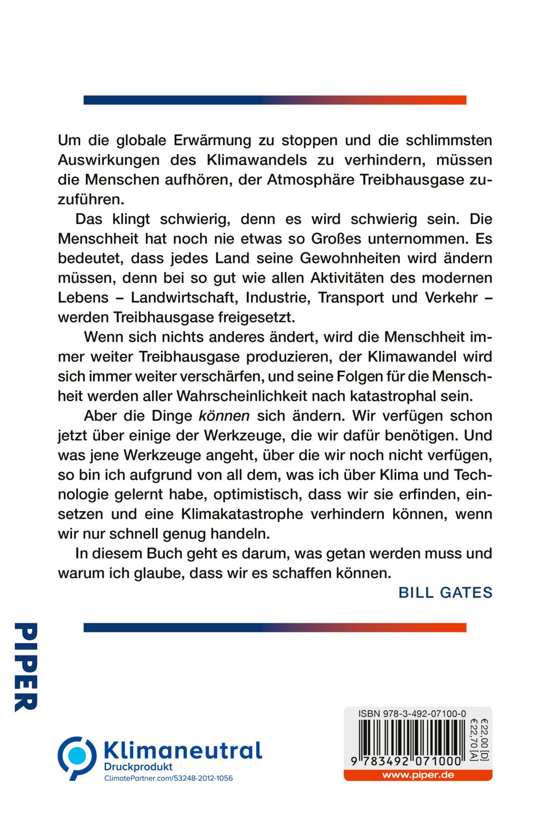 | Schlagworte | climate change • CO2 • Co2-neutral • Energiewende • Erderwärmung • Erneuerbare Energien • Gates Climate • Globale Erwärmung • How to Avoid a Climate Disaster • Klima • Klima Buch • Klimakatastrophe • Klimapolitik • Klimaschutz • Klimawandel • Klimawandel Buch • Lösungen Klimawandel • Umweltpolitik • Umweltschutz |