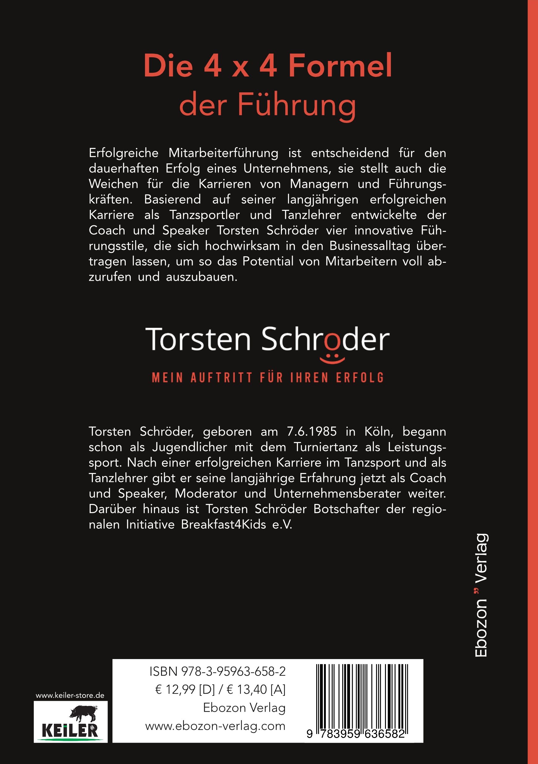 Erfolgreiche Mitarbeiterführung ist entscheidend für den dauerhaften Erfolg eines Unternehmens, sie stellt auch die Weichen für die Karrieren von Managern und Führungskräften. Basierend auf seiner langjährigen erfolgreichen Karriere als Tanzsportler und Tanzlehrer entwickelte der Coach und Speaker Torsten Schröder vier innovative Führungsstile, die sich hochwirksam in den Businessalltag übertragen lassen, um so das Potential von Mitarbeitern voll abzurufen und auszubauen.