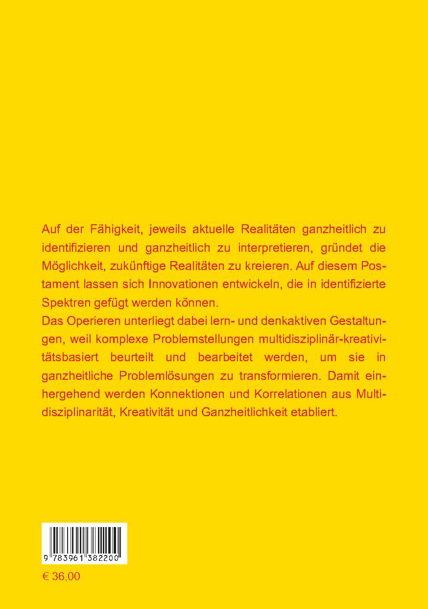 Auf der Fähigkeit, jeweils aktuelle Realitäten ganzheitlich zu identifizieren und ganzheitlich zu interpretieren, gründet die Möglichkeit, zukünftige Realitäten zu kreieren. Auf diesem Postament lassen sich Innovationen entwickeln, die in identifizierte Spektren gefügt werden können.
