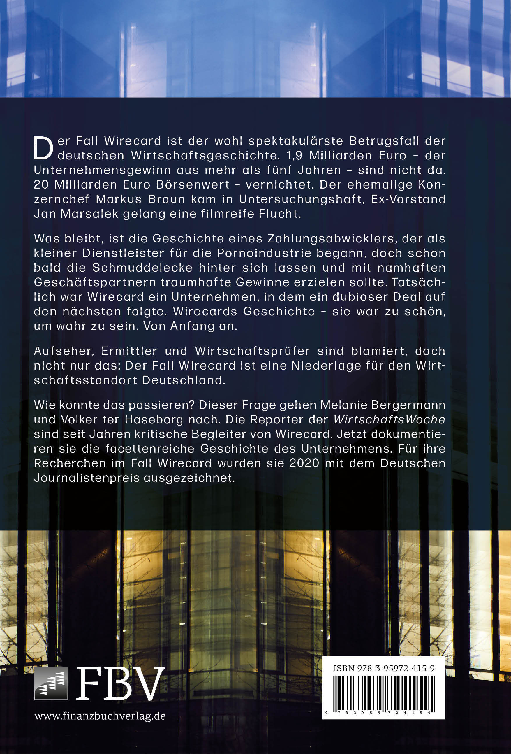 Wie konnte das passieren? Dieser Frage gehen Melanie Bergermann und Volker ter Haseborg nach. Die Reporter der WirtschaftsWoche sind seit Jahren kritische Begleiter von Wirecard. Jetzt dokumentieren sie die facettenreiche Geschichte des Unternehmens. Für ihre Recherchen im Fall Wirecard wurden sie 2020 mit dem Deutschen Journalistenpreis ausgezeichnet.