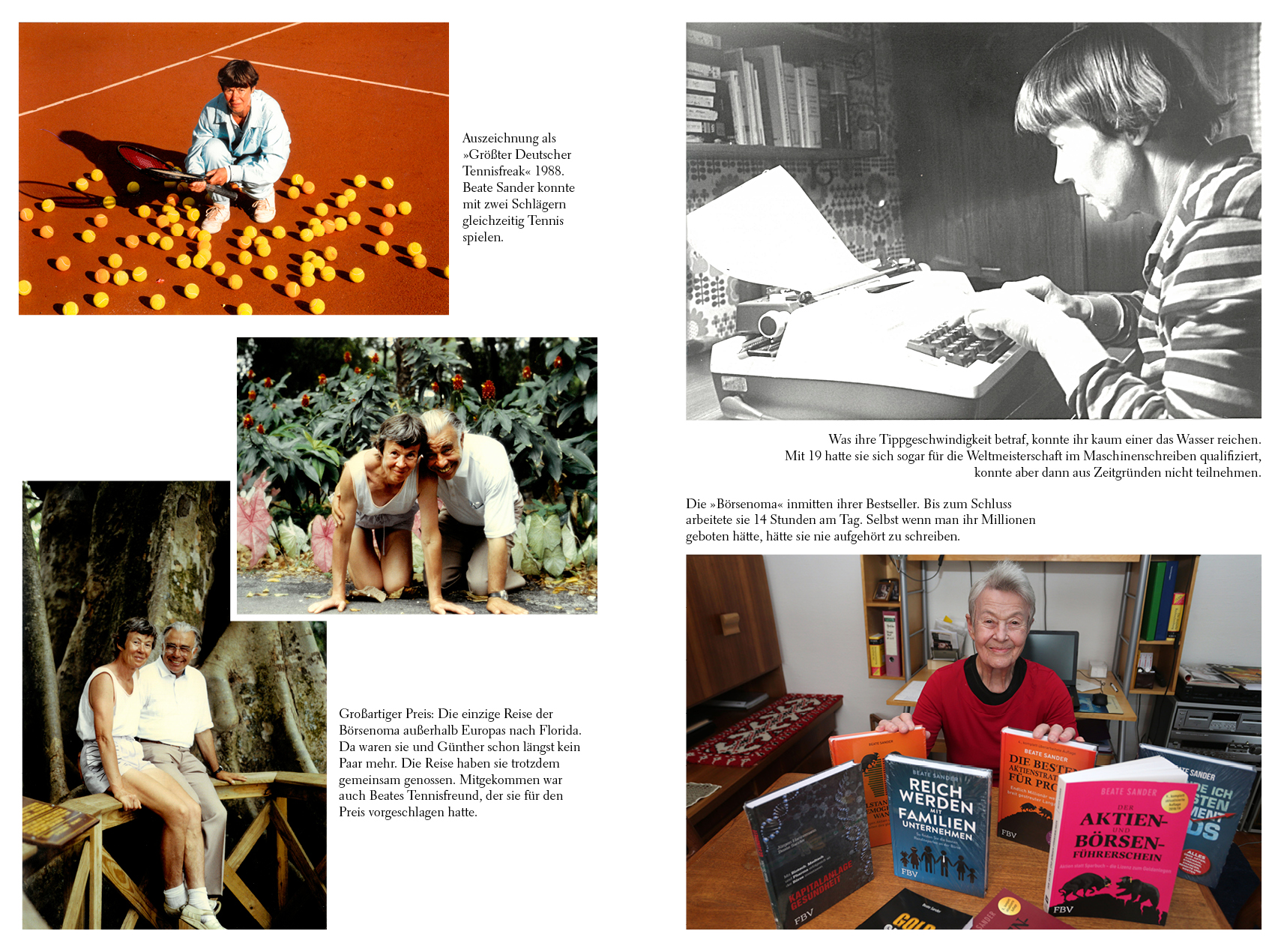 Beate Sander ist Deutschlands bekannteste Aktionärin und hat die Lizenz zum Geldanlegen. (…) Sie ist ein Vorbild für ältere und jüngere Menschen und ihre Begeisterung für Aktien ist ansteckend. (Mario Lochner, Mission Money)