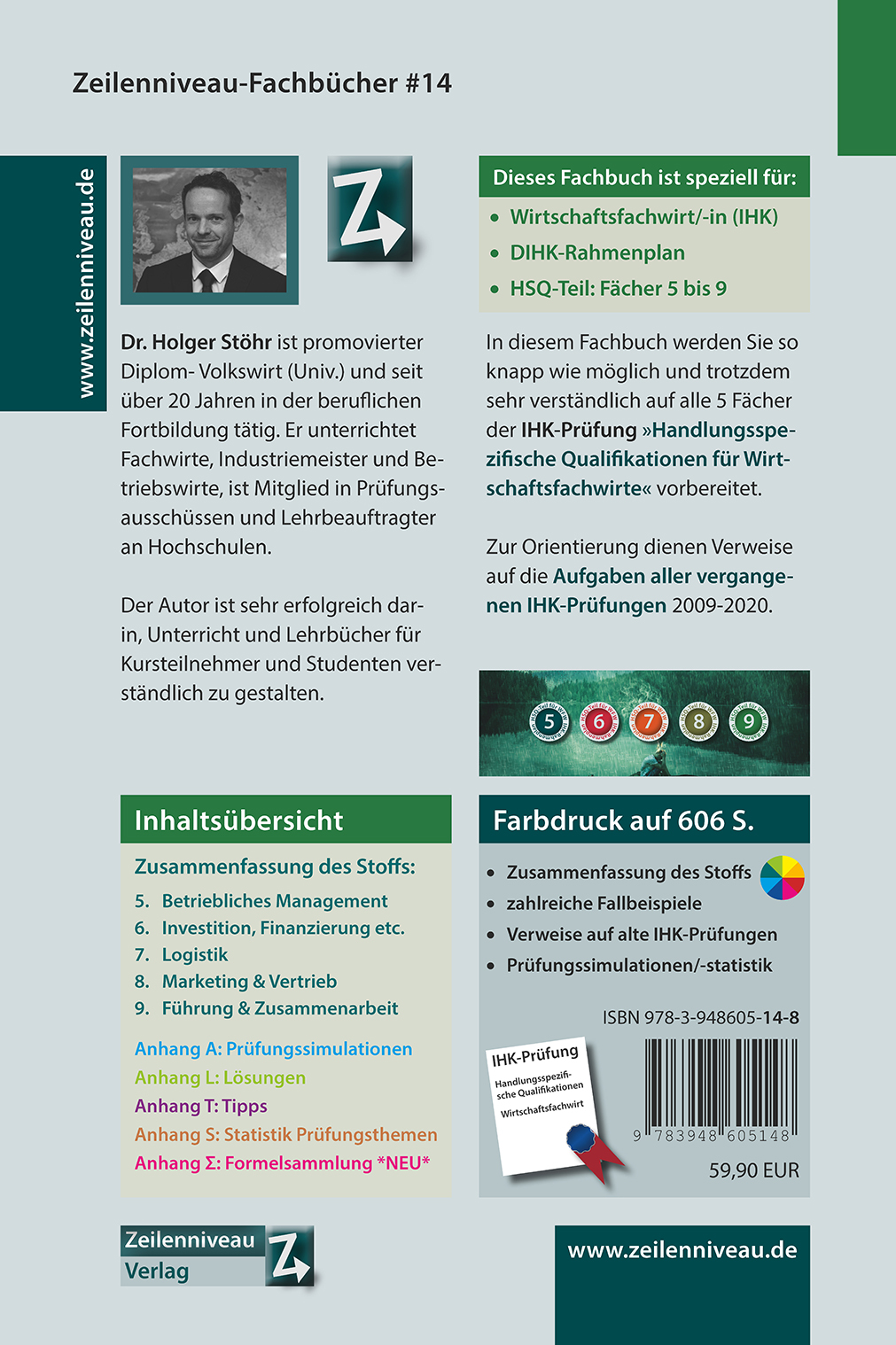Dr. Holger Stöhr ist promovierter Diplom- Volkswirt (Univ.) und seit über 20 Jahren in der beruflichen Fortbildung tätig. Er unterrichtet Fachwirte, Industriemeister und Betriebswirte, ist Mitglied in Prüfungsausschüssen und Lehrbeauftragter an Hochschulen. Der Autor ist sehr erfolgreich darin, Unterricht und Lehrbücher für Kursteilnehmer und Studenten verständlich zu gestalten.
