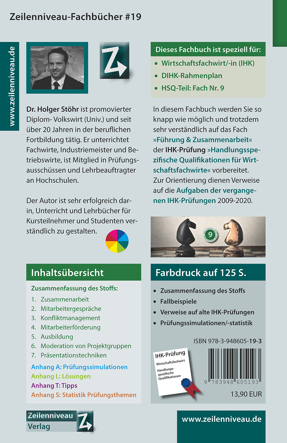 Dr. Holger Stöhr ist promovierter Diplom- Volkswirt (Univ.) und seit über 20 Jahren in der beruflichen Fortbildung tätig. Er unterrichtet Fachwirte, Industriemeister und Betriebswirte, ist Mitglied in Prüfungsausschüssen und Lehrbeauftragter an Hochschulen. Der Autor ist sehr erfolgreich darin, Unterricht und Lehrbücher für Kursteilnehmer und Studenten verständlich zu gestalten.