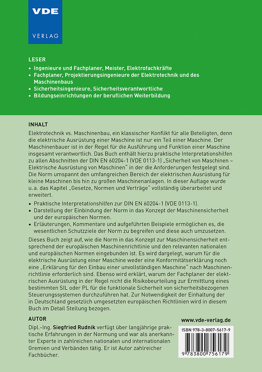 | Schlagworte | DIN EN 60204-1 (VDE 0113-1) • Elektrische Ausrüstung • Funktionale Sicherheit • Maschinelle Anlage • Maschinenausrüstung • Maschinensicherheit • Maschinen- und Anlagenbau |